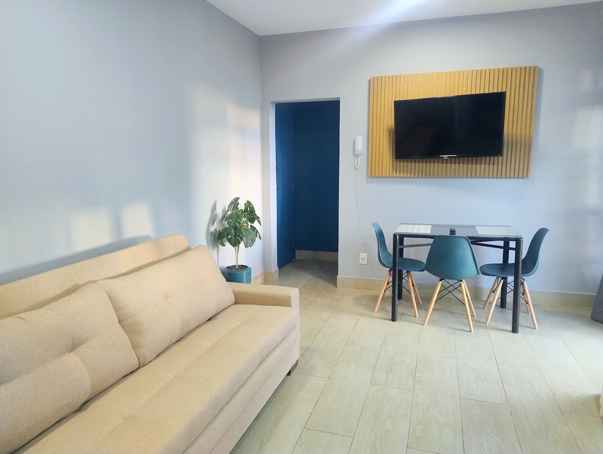 O Studio é silencioso e tem capacidade para até 03 hóspedes. Com rouparia, ferro, secador, cozinha completa e internet WiFi. Localizado na região Centro Sul de Belo Horizonte, ao lado do Shopping Cidade e Sesc Palladium. Perto do Palácio das Artes, Parque Municipal, Praças: da Estação, Sete, Raul Soares e Liberdade, Minascentro e Mercado Central. Estacionamento Particular 24h, há 100 metros Sinta-se à vontade para tirar suas dúvidas! CARNAVAL 2026 Mínimo 05 noites e 2 Hóspedes