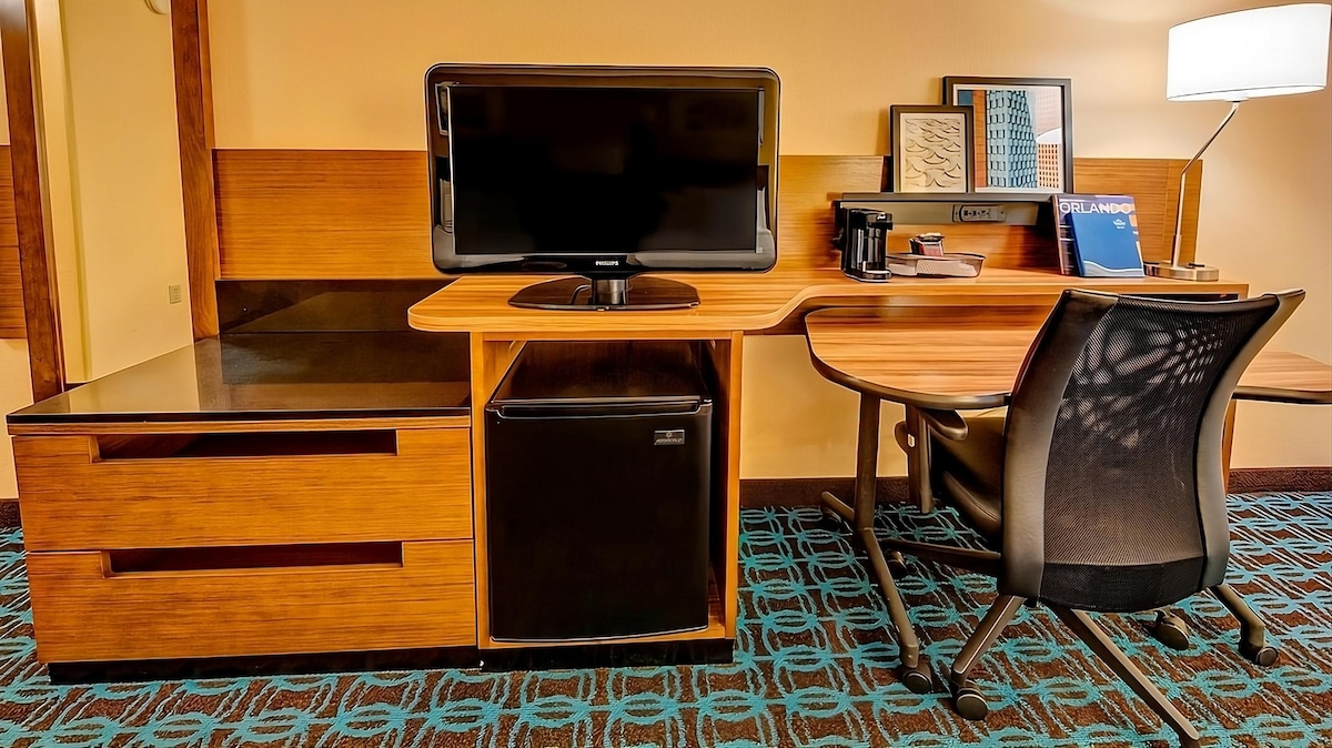 Our cozy accommodations include everything you need for a productive and relaxing stay in the Sunshine State. Our hotel provides quick access to SeaWorld Orlando, Orange County Convention Center, The Florida Mall and Universal Studios Resort. Following your adventures unwind in our spacious rooms featuring free high-speed Wi-Fi, Smart TVs and comfortable bedding. The Market, our 24-hour convenience store, offers your favorite snacks and beverages any time of day. We do not have shuttle service.