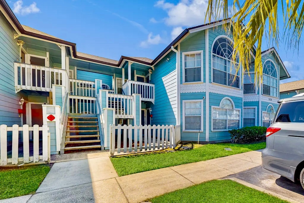 Platform fee 18.5% is paid by host. One of the closest resorts to Disney World (5 miles), 3-bedroom, 2.5-bath townhome overlooks a serene conservation area, There are heated outdoor pools and spas, sauna, gym, game room, mini golf, volleyball, tennis courts and kids' play areas. 1295 sqft of comfort and value—perfect for guests seeking relaxation and convenience, not hotel-style luxury or perfection **Primary guest registration with ID required through guest portal.