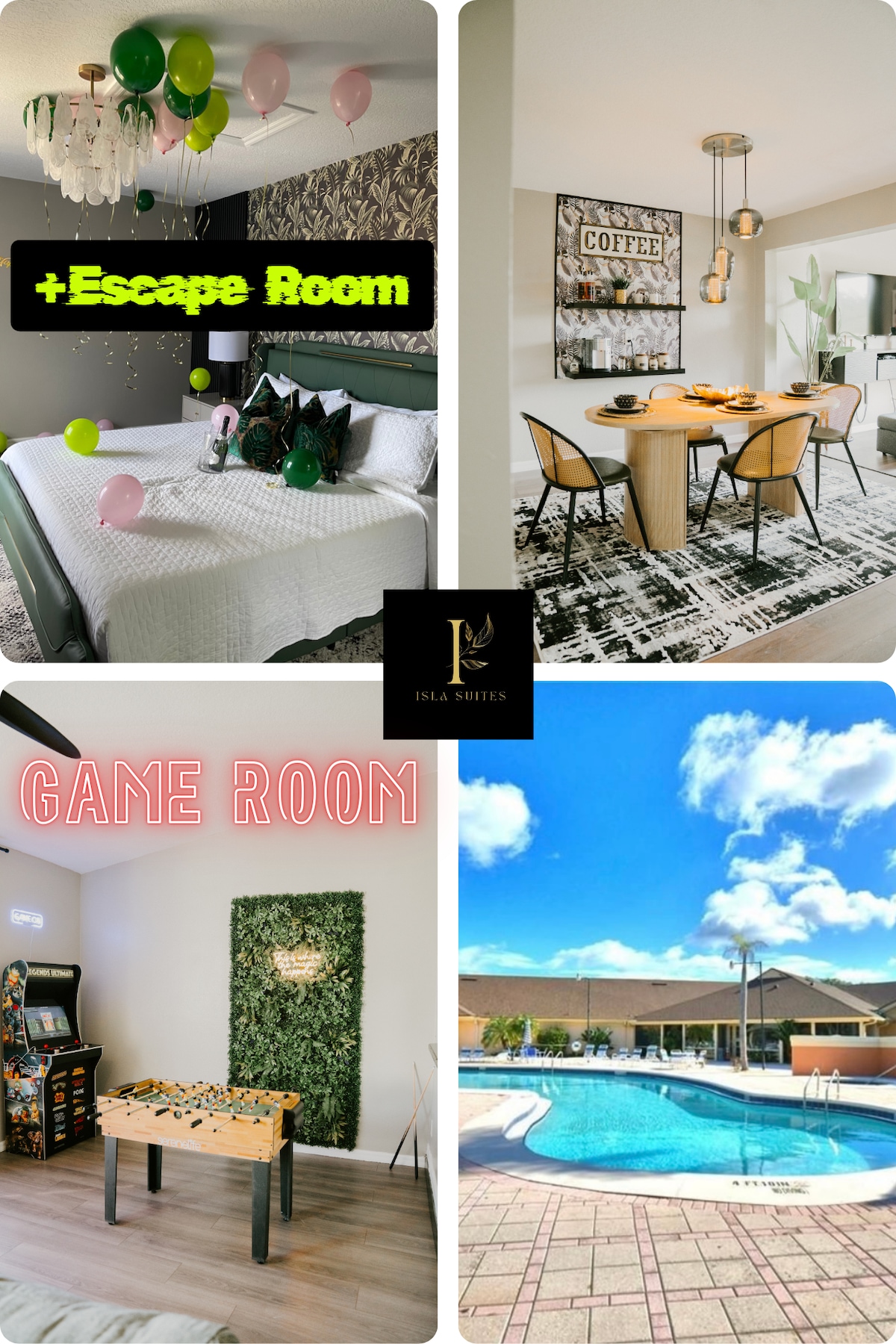 Discover luxurious comfort at the beautiful Island Paradise home. For your vacation we provide the best family friendly tropical getaway. The entire Townhome is crafted with intentional love. We will enhance your vacation by feeling right at home paired with our amazing amenities that exude an all inclusive resort like experience: waterpark, beach volleyball, basketball, poolside service for our restaurant and bar, kayaking, and mini golf.