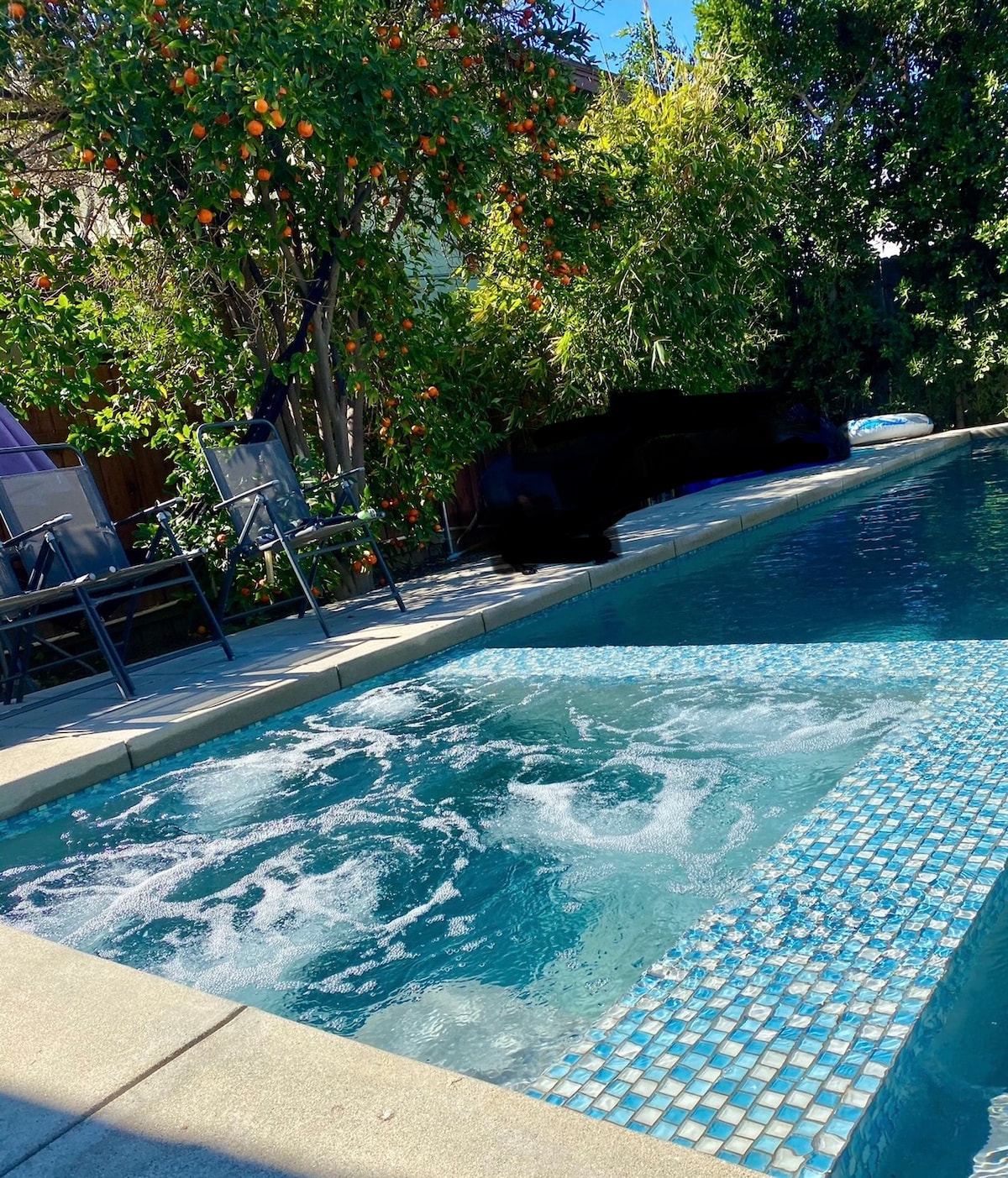 Welcome to our spacious guest house located just a 5-minute drive from the famous Walk of Fame. As you step inside, you'll be greeted by an old tree that stands tall in the center of the guest house. The guest house features a large and comfortable living area with plenty of seating, perfect for relaxing after a busy day of exploring. But perhaps the best part of this guest house is the spacious patio that is the perfect spot to unwind and soak up the California sunshine.