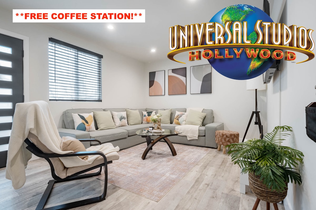 This is a one a kind Designer decorated NEW CONSTRUCTION IN 2022! 2BR/2BTH Townhouse which is walking distance from Universal! Nothing else like this exists on the market in terms of quality AND location to Universal & also Hollywood which is only 6 minutes away! This location is one of the few in LA that doesn't need a car although you do have a private garage for parking. High end furniture, design, and bedding make this the place for the pickiest of guests.