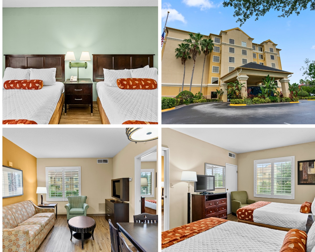 Our cozy accommodations include everything you need for a productive and relaxing stay in the Sunshine State. Our hotel provides quick access to SeaWorld Orlando, Orange County Convention Center, The Florida Mall and Universal Studios Resort. Following your adventures unwind in our spacious rooms featuring free high-speed Wi-Fi, Smart TVs and comfortable bedding. The Market, our 24-hour convenience store, offers your favorite snacks and beverages any time of day. We do not have shuttle service.