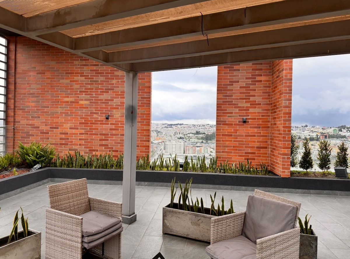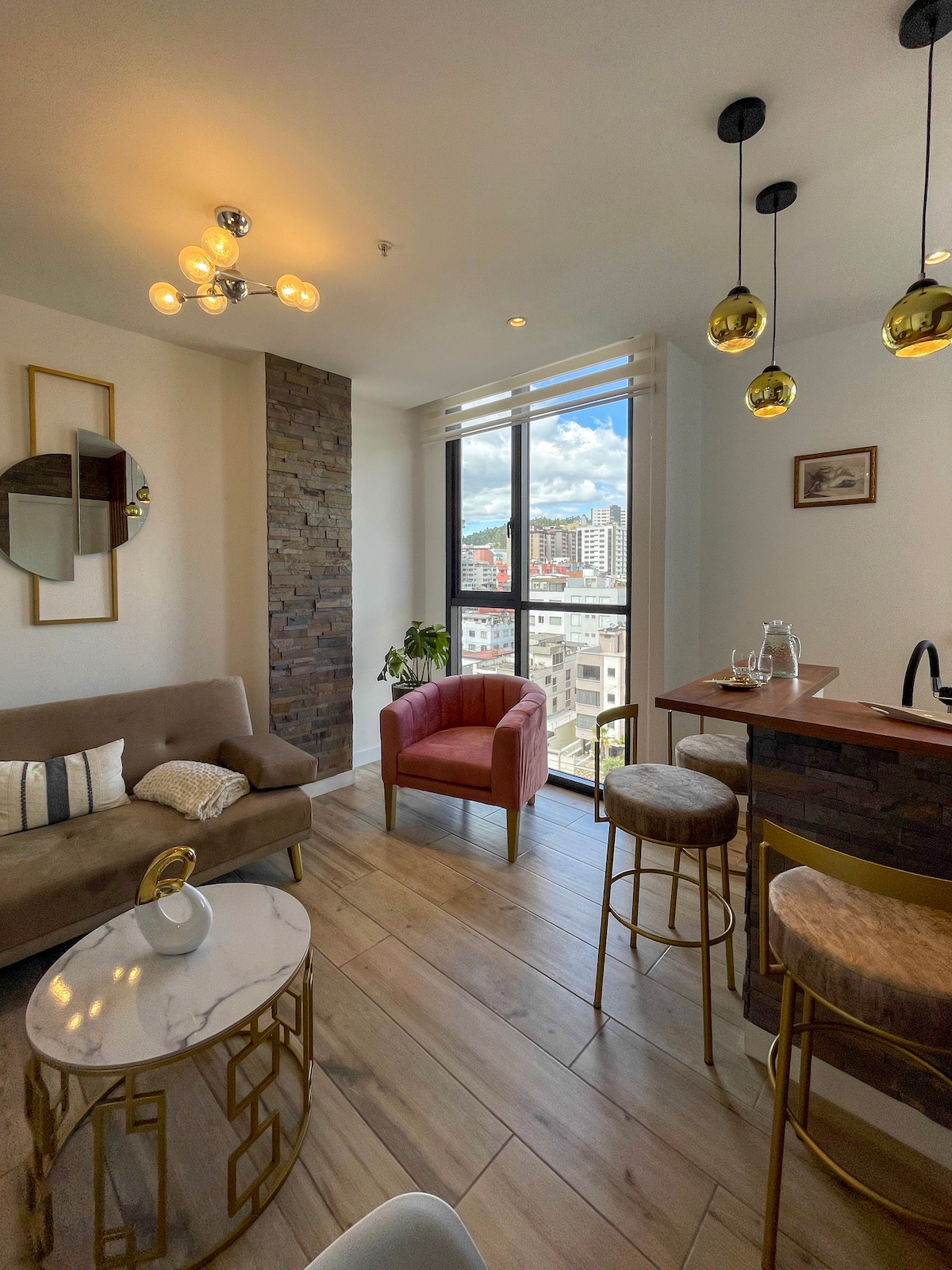 Bienvenido a nuestra maravillosa suite de lujo en el piso 20 de un edificio nuevo y vanguardista! Este oasis en altura está diseñado para brindarle comodidades de primera clase (unas de uso libre y otros previa reserva). Para los amantes de la parrilla, disponemos de un área BBQ con vista 360 a Quito, y aquellos que viajan con sus mascotas estarán encantados de saber que somos pet-friendly. También disponemos de un snack bar con varios productos y bebidas por un pago adicional