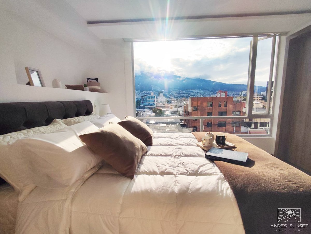 Experimenta una placentera estadía en nuestra hermosa suite, con una ubicación estratégica. Bienvenido a Andes Sunset Suite Bnb, un espacio diseñado para que tus estadías de negocios o vacaciones en la ciudad de Quito, en pleno corazón de los Andes, sea cómoda y acogedora. Tanto en la suite como en el edificio, encontrarás todas las comodidades necesarias para que te sientas como en casa; lo que nos convierte en la opción ideal tanto para familias pequeñas como para ejecutivos.