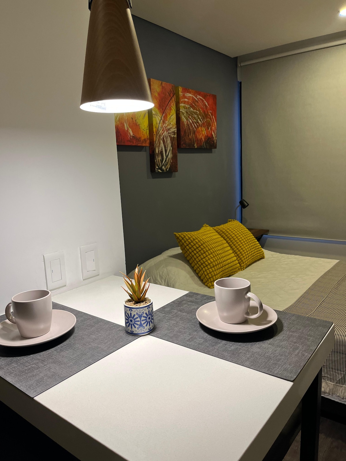 Relax in this modern and comfortable loft located in the charming Usaquén, one of the most vibrant areas of Bogotá. Within a few minutes walk, you will find a variety of gourmet restaurants, cafes, and unique boutiques. The room features a queen bed, private bathroom, Wi-Fi, and a workspace ideal for business travelers. Perfect for couples or solo travelers who want to explore authentic Bogotá life in a safe and sophisticated environment. Uroom is exquisite in the details!