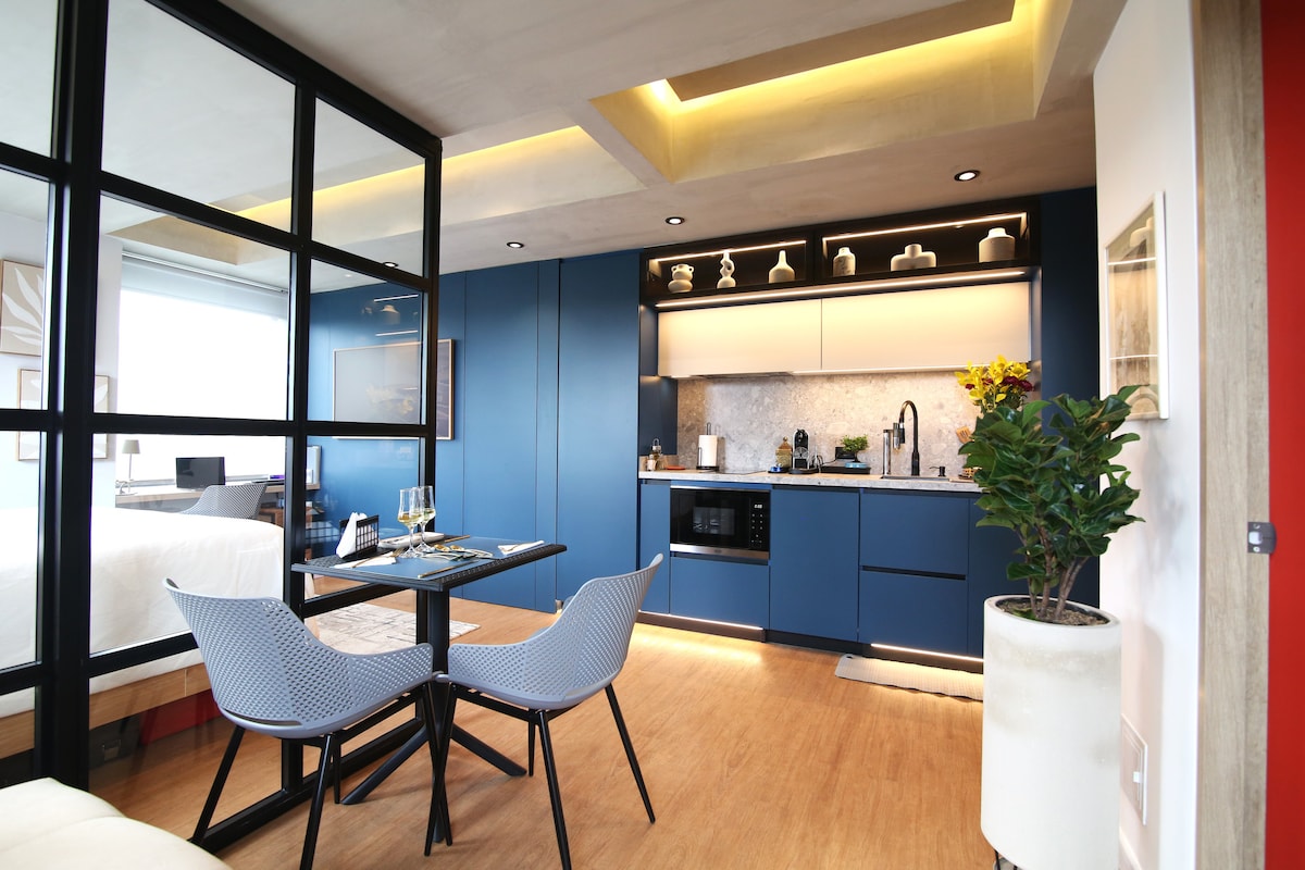 Brand new luxury designer studio in Bella Suiza with private 20m² terrace, 2 bathrooms, smart home system, and Swiss fiber gel duvets. Enjoy premium Olfa toiletries, Nespresso capsules, dishwasher & US-imported laundry pods. Secure building with 24/7 concierge. Guests 18+ only must register with ID at reception. Smoking (cigarettes only) allowed on terrace. Walk to cafes, Carulla, and Usaquén. Private parking included.