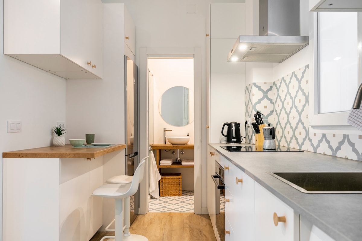 Como Superhost 🏅, te ofrecemos un apartamento reformado de 40 m², 🛏️ con todo lo necesario para tu estancia. Wifi rápido 📶, cocina completa 🍳 y un baño moderno y bien diseñado 🛁. Metro a 2 min 🚇. Reserva con tranquilidad con cancelación flexible y disfruta de comodidad y estilo 🛋️