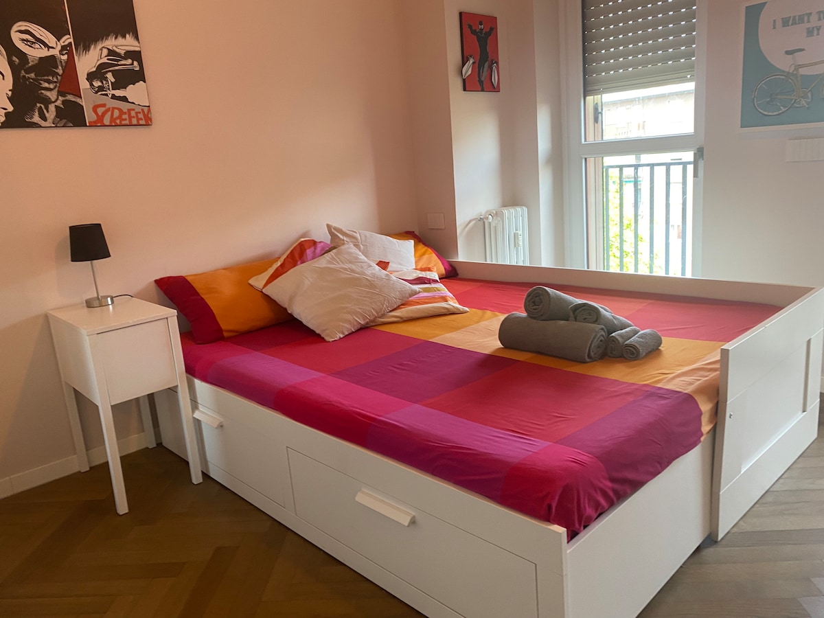 Comfortable 65mq apartment close to Navigli district and only 15 minutes by tram to Duomo (centre). Subway M2 at only 300 mts. Supermarkets, cafes, bakery and restaurants just few steps from the house. The apartment has 4 bed accomodation: 2 double bedrooms (one acts also as living room), a fully equipped kitchen and a bathroom with tub/shower, hairdryer and washing machine. AIRPORT SHUTTLE SERVICE H24 CIR 015146-CIM-00851 CIN IT015146B4N8FGARLX