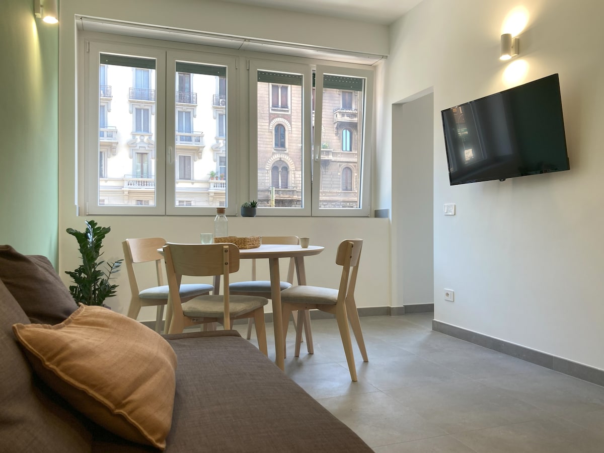 A stylish, bright loft ideal for travelling people, professionals/remote workers and leisure guests alike. 60 sqm with exposed beams and private terrace. Very fast Wi-Fi 1 Gbps fiber, large table desk, comfortable workspace, AC and modern comforts. Situated in a trendy, cosmopolitan area, full of Art Nouveau architecture, independent cafés, design bars, and international restaurants. Just a few minutes walk from Corso Buenos Aires, one of the longest shopping streets in Europe.