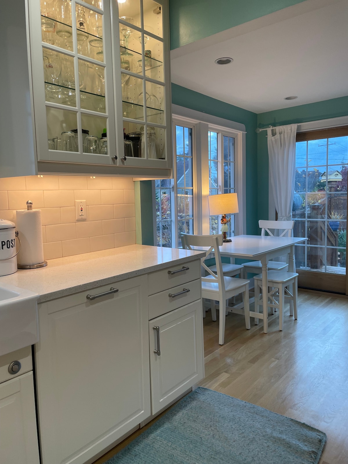Enter this newly-renovated apartment through a private entrance off a spacious garden deck on the first floor of our 1926 stucco home, located in the lovely Laurelhurst neighborhood of Northeast Seattle, known for beautiful homes, rolling hills, and scenic pathways. Our neighborhood is safe, quiet and garden-like, yet only minutes from UW, Children’s Hospital, and Downtown Seattle. University Village, a unique and upscale outdoor mall nearby, offers shopping and wonderful restaurants.