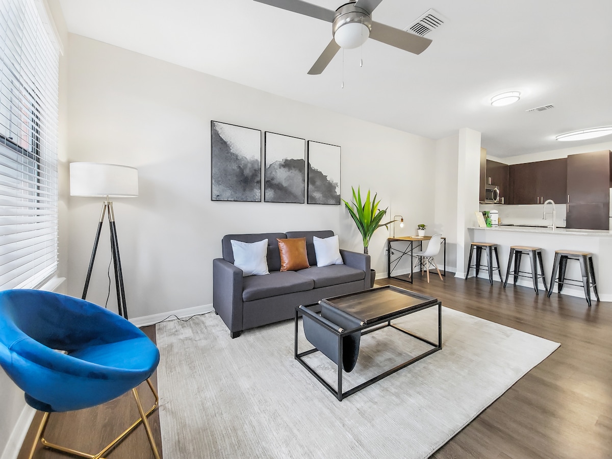 Great business getaway, less then 15min. from downtown! Peaceful quiet relaxing! Modern one bedroom condo for business, pleasure, or getaway. King size bed in private bedroom. Sofa bed, and Queen air mattress, can sleep up to 4 people. Close to all Tampa has to offer, as well as beaches, Busch Gardens Disney World all driving distance Enjoy the Florida sun relaxing in a hammock by the resort style pool! Additional fees $25 to check in 1hr. early $20 if ID not submitted in 2hrs on day of booking