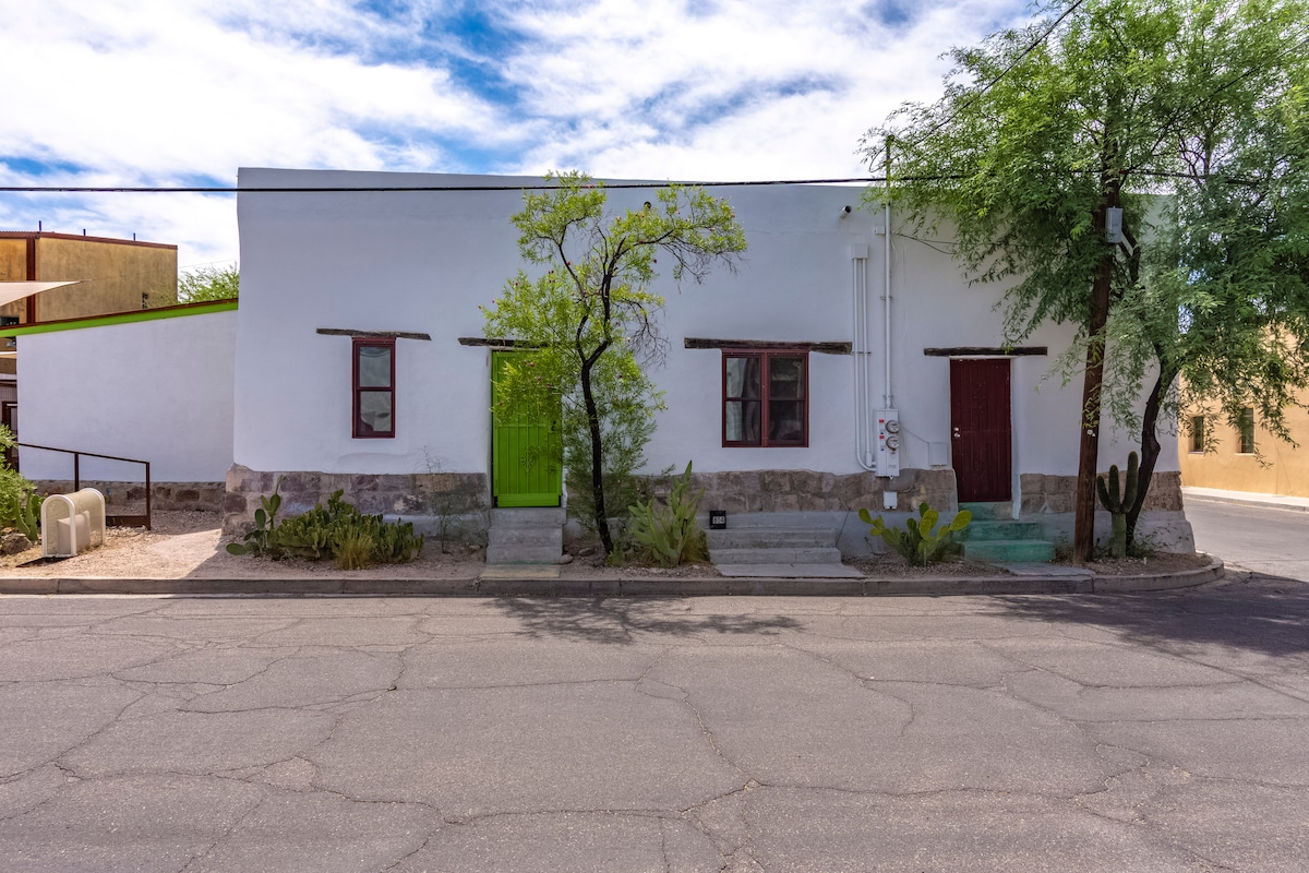 ✓ Retro appliances ✓ Well-equipped/stocked kitchen ✓ Wifi & smart TV ADDITIONAL FEE: To preserve the condition of our property, a refundable Safety Deposit ($700) or non-refundable Damage Waiver ($42.80) is REQUIRED. After booking, you'll receive a Boarding Pass link via Enso Connect, an AUTHORIZED AIRBNB PARTNER, to provide your name, phone, and email, and choose either the Safety Deposit or Damage Waiver. 3 min → U of A (walkable/bikeable) 3 min → Downtown Tucson 25 min → Sabino Canyon