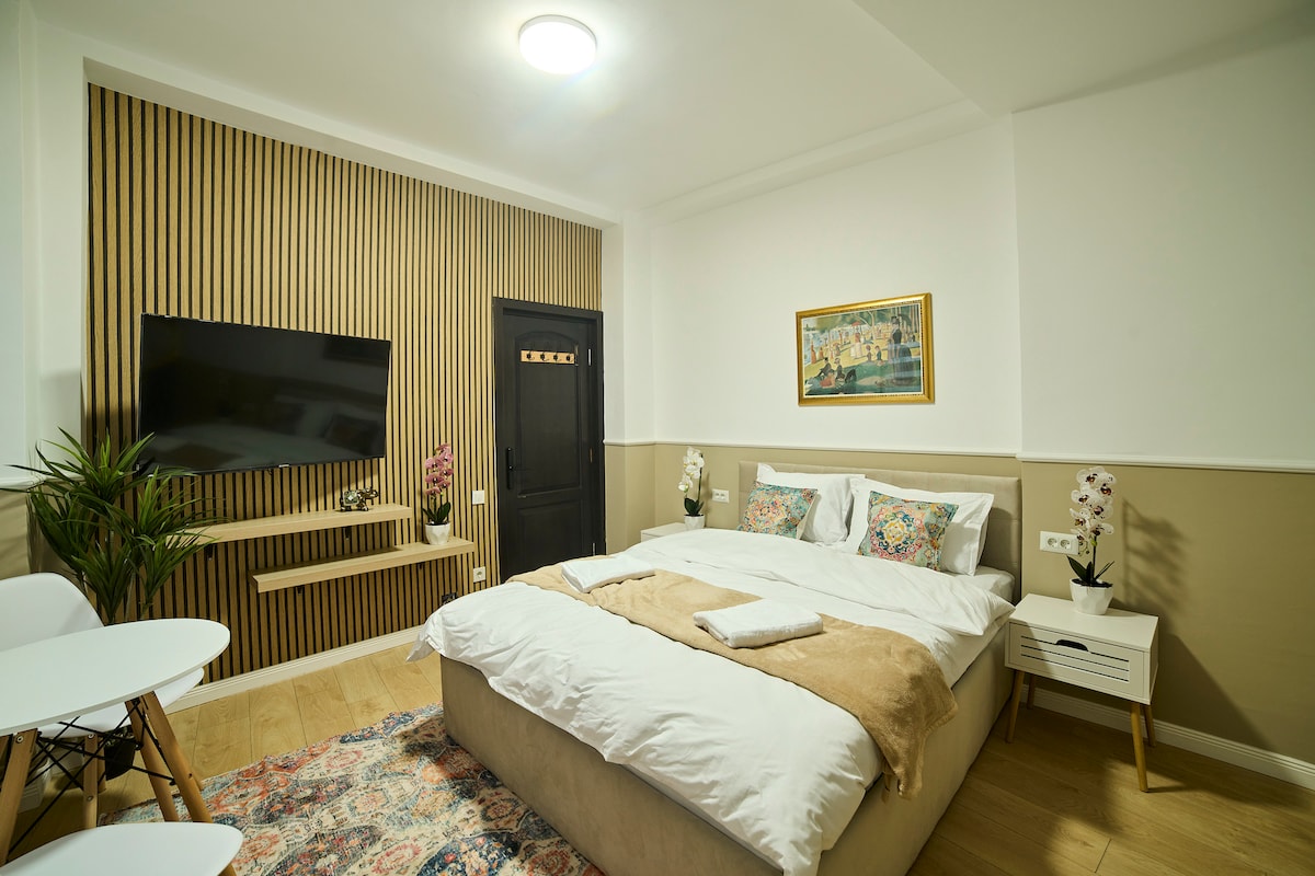 Descoperă eleganța acestui studio cochet, situat într-o zonă deosebită a Bucureștiului, între Parcul Cismigiu și Calea Victoriei. Decorat cu bun gust și rafinament, spațiul oferă confort și intimitate, fiind ideal pentru oaspeți ce doresc să se bucure de farmecul orașului. La doar câțiva pași de atracțiile principale, cafenele și restaurante, acest studio te va încânta prin atmosferă și locație perfectă pentru explorare. Mic dejun to go inclus!