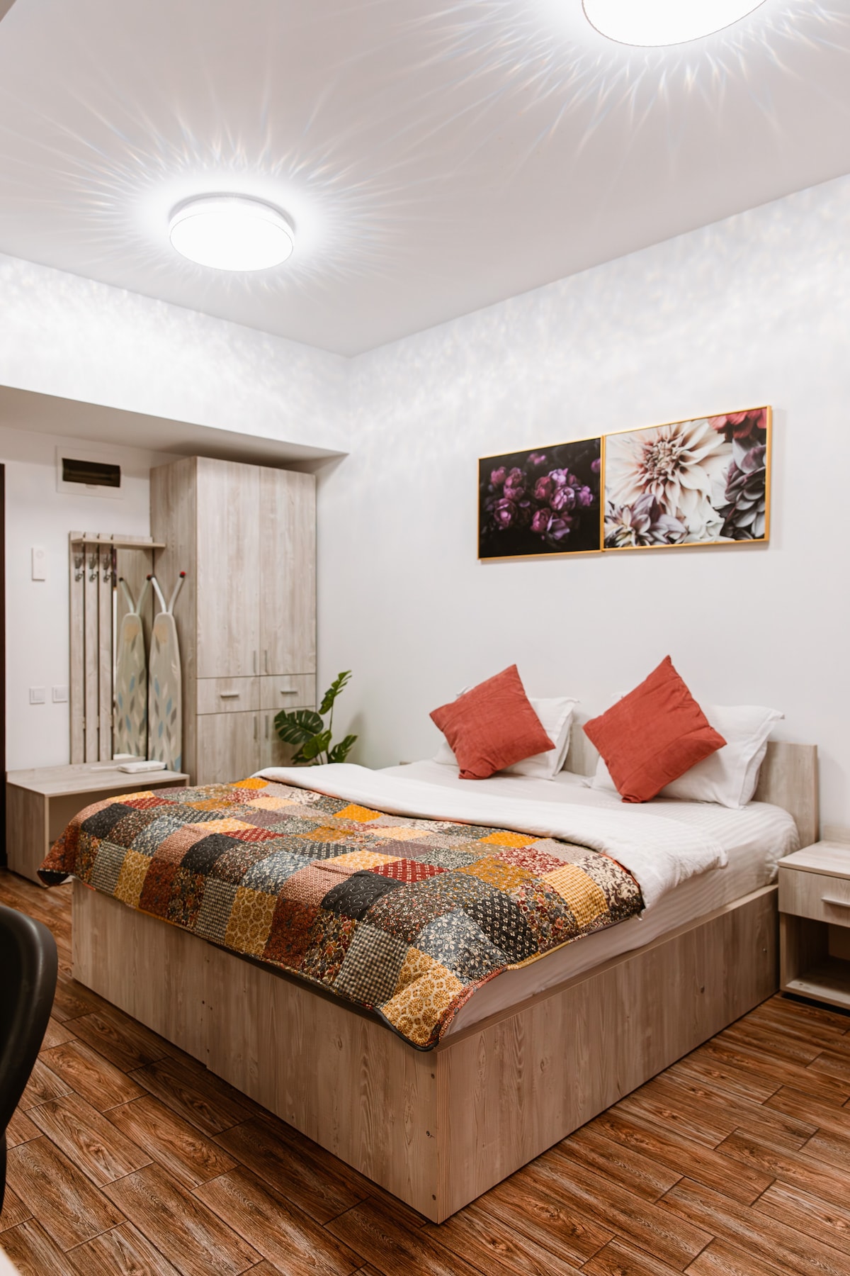Welcome to your Home in Victoriei, your cozy retreat in the heart of the city! Designed to make you feel at home, this modern minimalist style combines warmth and elegance with a soothing palette of light brown, cream, and gray. The inviting bedroom features soft textures, natural wood flooring, and a serene ambiance, perfect for relaxation. Thoughtfully decorated, subtle accents, this space blends simplicity with comfort, creating a stylish and peaceful escape. Your home away from home awaits!