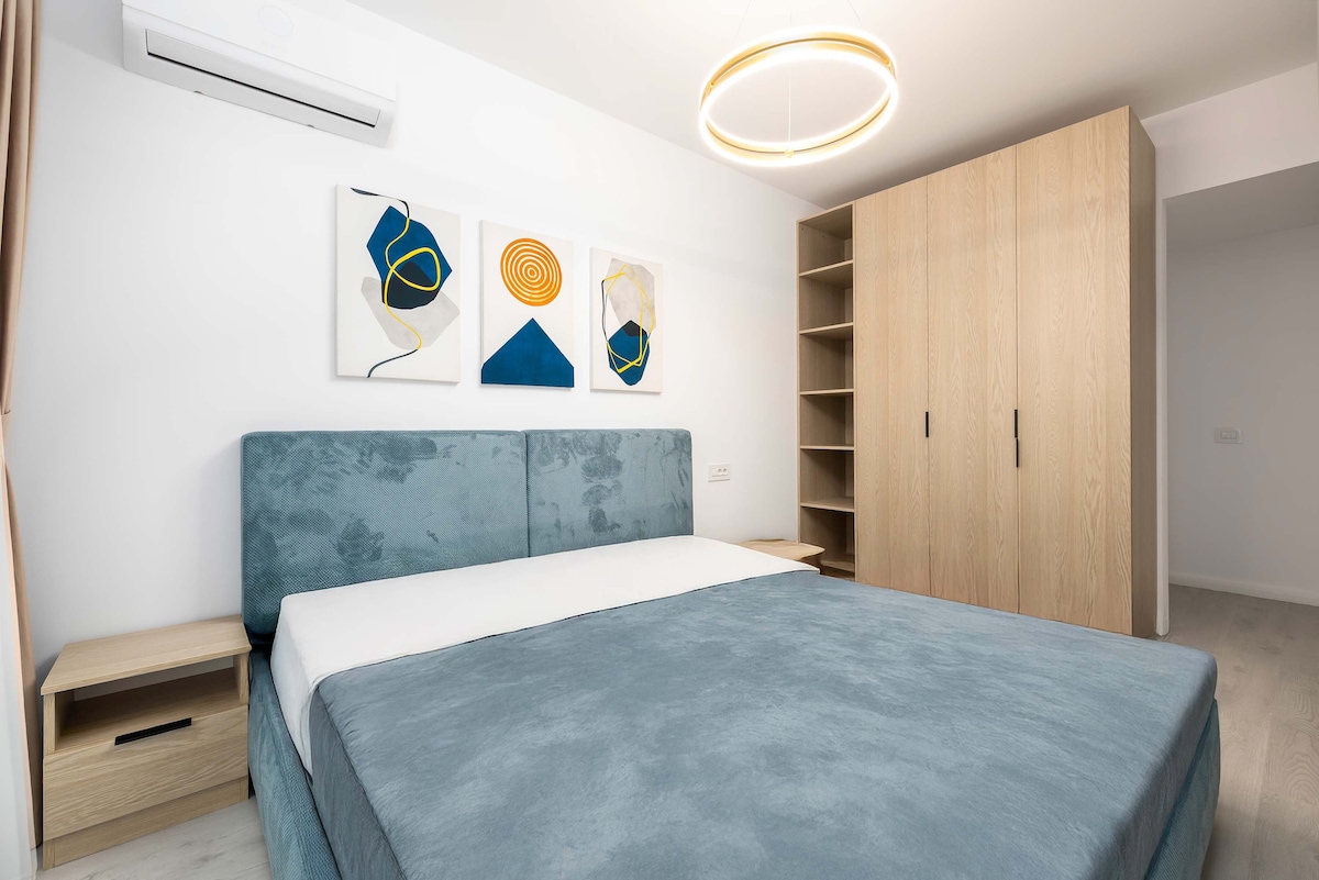 Experience luxury in our 1BD 1Bath apartment nestled in Bucharest's upscale Herastrau neighborhood. Revel in contemporary decor and premium amenities, like a well-equipped kitchen, high-speed Wi-Fi, and comfortable queen-beds Explore the city effortlessly with accessible public transportation and complimentary underground parking. ✔ Private Underground Parking ✔ High-Speed Wi-Fi ✔ Smart TV with Netflix ✔ Nespresso Coffee ✔ Stunning City Skyline View ✔ Private Terrace