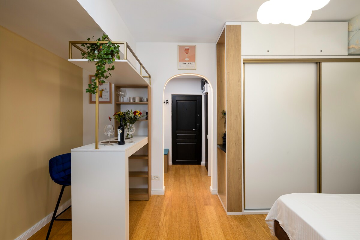 This beautiful 1 Bedroom apartment is located in the heart of Bucharest between the old city and Romana square. Location wise it doesn't get any better than this. From the cosy balcony you have amazing city views. The place is easily accessible by public transport (bus & metro). This bright flat was fully refurbished in 2021 with high standard materials and has all possible amenities available for a perfect stay.