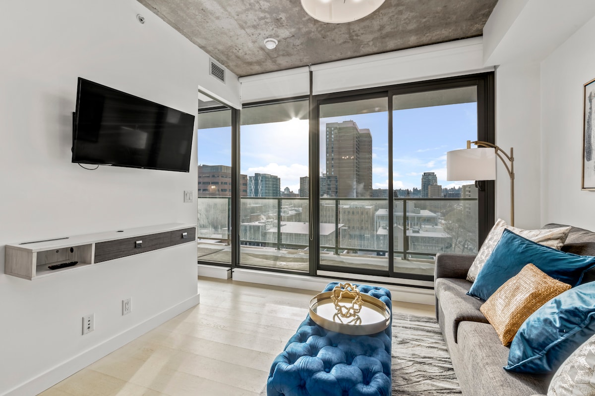 Welcome to our newly constructed Nude Building studio condo in downtown Calgary! It features expansive floor-to-ceiling windows that invite in abundant natural light, a cozy queen bed, a plush sofa and a fully stocked kitchen. Venture out to the lively 17th Avenue, just moments from your doorstep, brimming with fashionable boutiques and dining choices. Whether you're here for business or leisure, our studio provides convenience at the city's core, accompanied by captivating city skyline view.