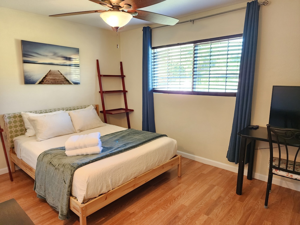 Welcome to Woodland! Our converted Master Bedroom Studio unit comes with a Queen bed and full bathroom w/walk-in shower. Private side entry. Amenities include mini-fridge, microwave, coffee maker, fresh towels & linens, complimentary water & coffee. Driveway parking available. Close to Sacramento Int’l Airport (15 min), UCDavis (11 min), Golden1 Stadium (20 min), Cache Creek Casino (35 min). Accessible to I-5, Hwy 113 & Hwy 16. We our located in a residential area w/easy shops and restaurants.