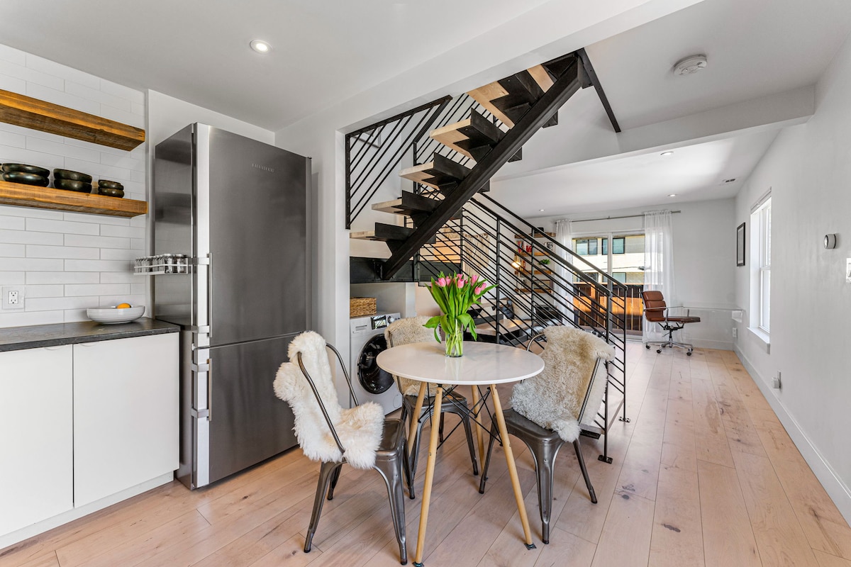 Enjoy the ease and peace of mind of your own private courtyard and entrance. Our open concept design provides a feeling of spaciousness, with areas for eating, sleeping, and hanging out. Key-pad door allows for easy self check-in to a safe, private, and clean environment. Sink and ample counter-space to brew up your morning coffee or prepare a simple meal. En suite master bath with a large walk-in shower. Easy parking in front of house. Fast fiber-optic internet.