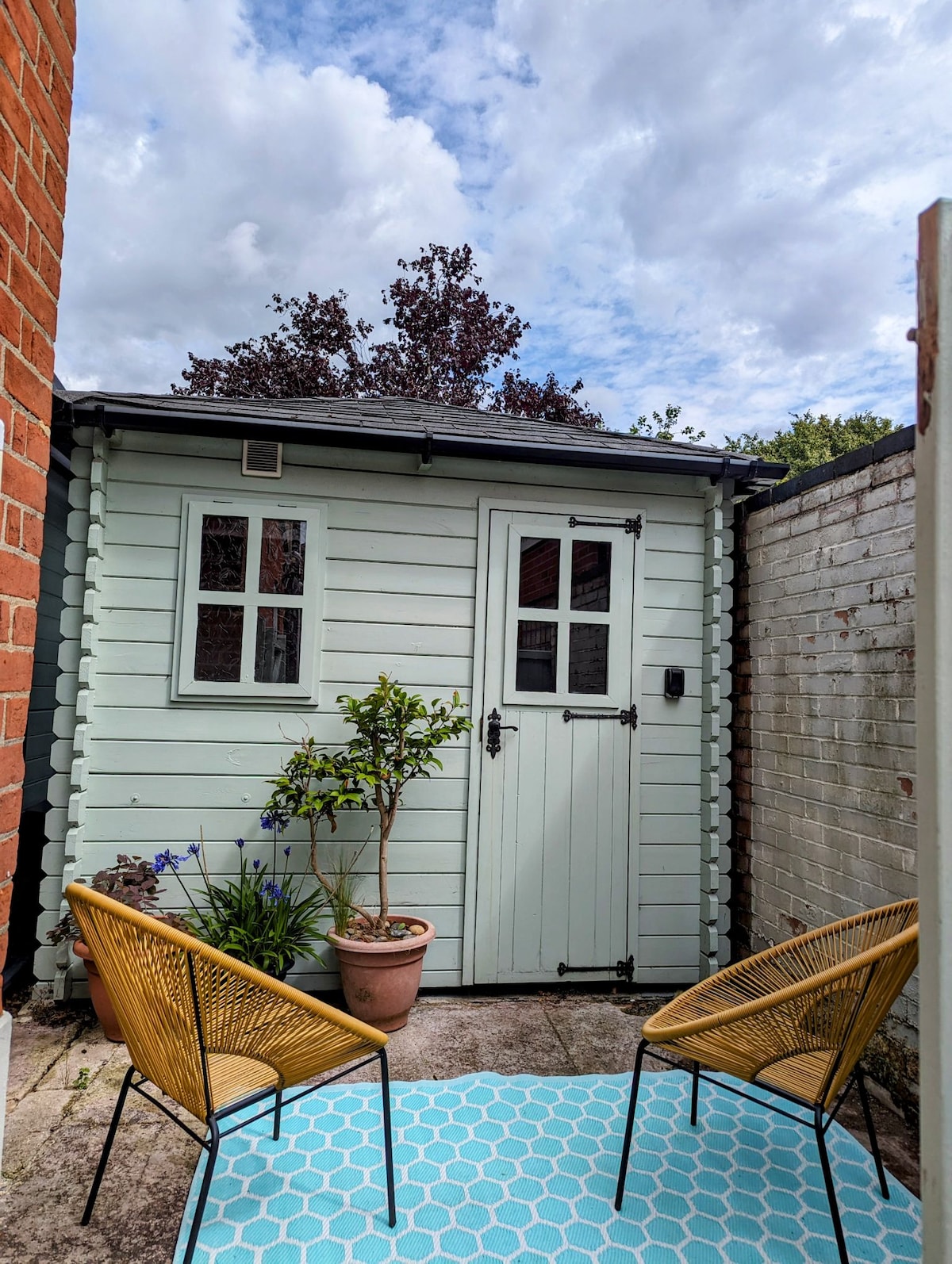 Lovely little self contained, heated studio cabin with double bed and en-suite shower room. This is a completely private space within our garden, but separate from our house. You have your own private entrance through the side gate and a little outdoor space to sit. Flexible work/dining space with a folding table which you can leave up or put down to make more room. We have decorated our cosy cabin with retro and vintage finds we have acquired over the years, with a quirky, clashing style :)