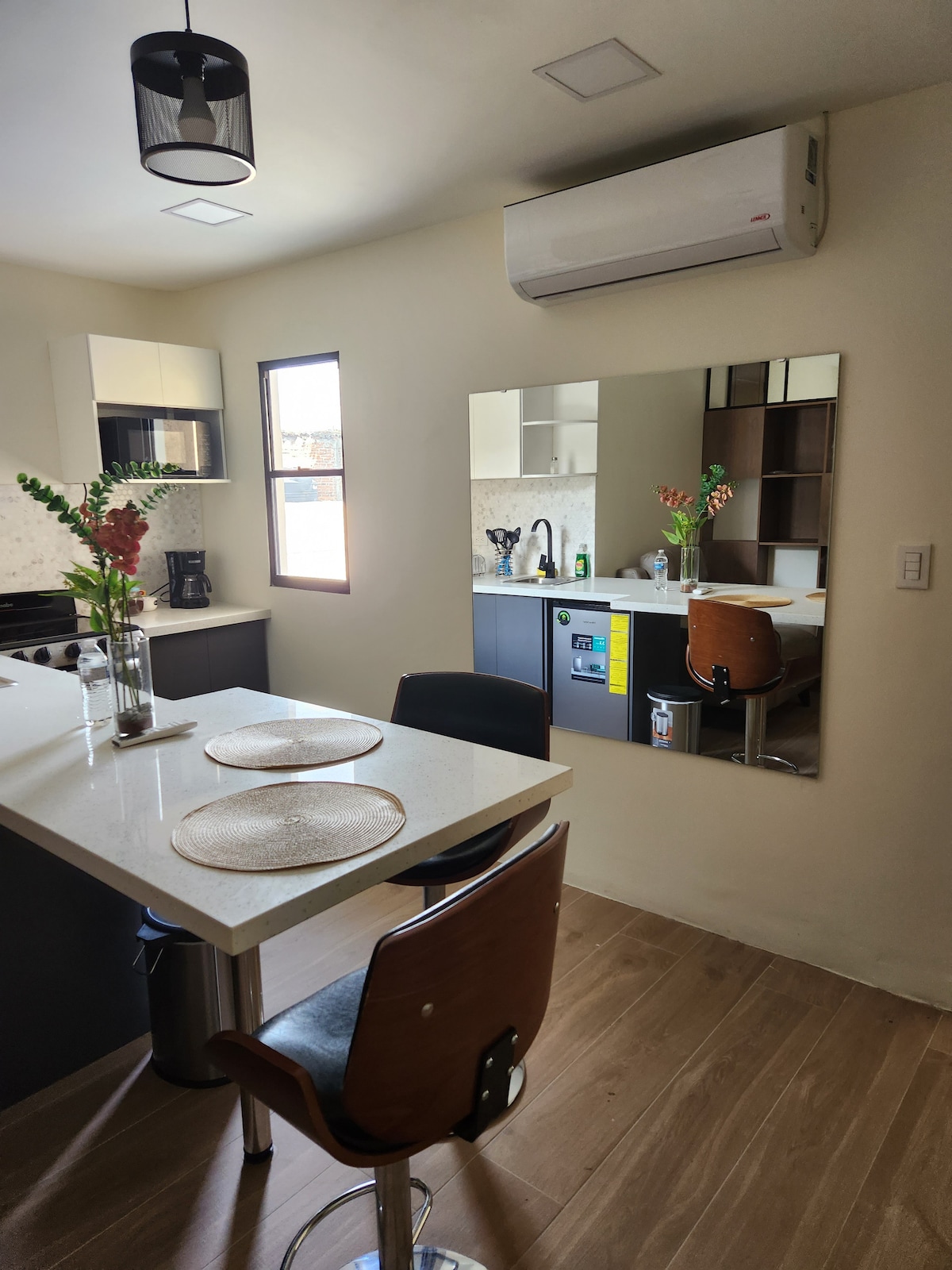 One Master BDR Rental, for Comfort & Ease! Offering hot shower, fully equipped kitchen, living room, bathroom, terrace and fast Wi-Fi. Located in one of the highest Rated and Secure neighborhoods in town, and close to everything San Salvador City offers. This prime location apartment delivers the perfect stay and amenities, ideal for couples, travelers, digital nomads looking for a place for relax, while explore, work, or attend an event, offering an unbeatable convenience during your stay.
