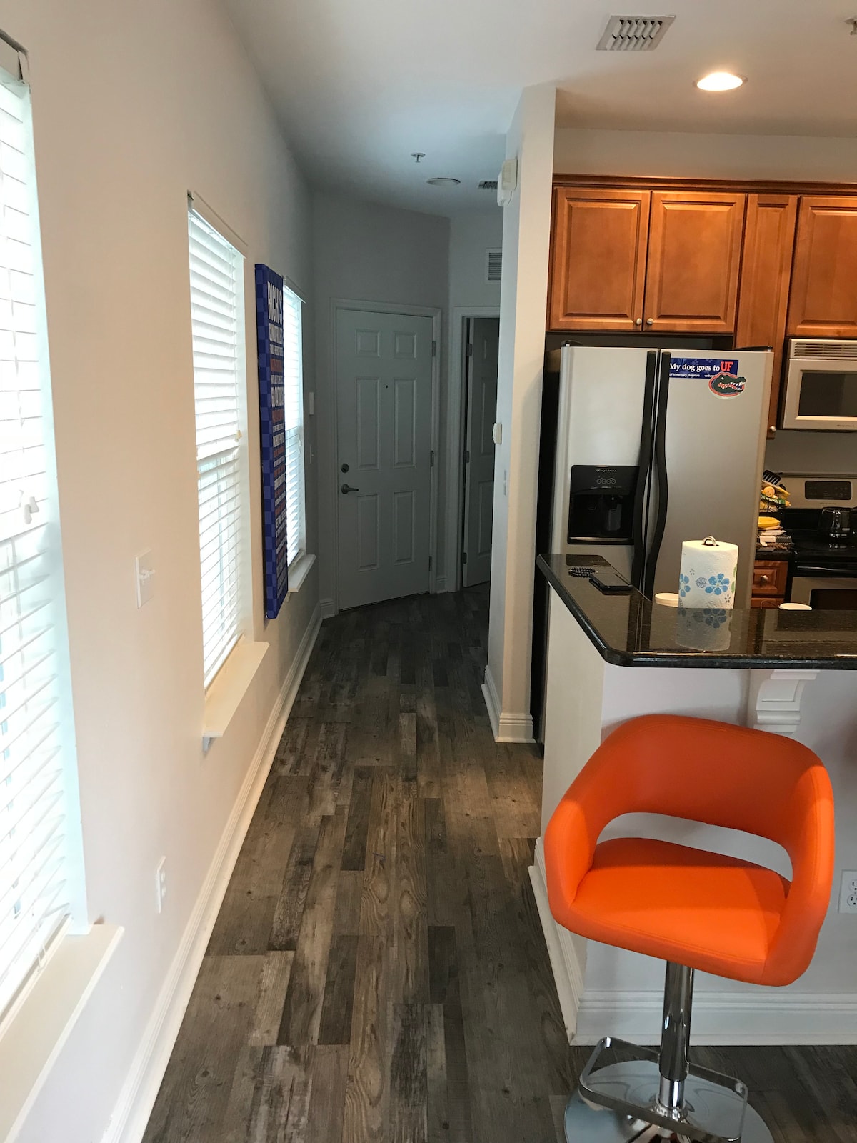 Beautifully, remodeled condo in the heart of Gainesville, Florida. This condo features one bedroom and one bathroom with a comfortable queen size bed. Additionally, the living area boasts a comfortable futon sofa which converts into another bed for additional guests. The kitchen includes granite countertops with gas stove, as well as a Keurig Coffee Maker. This condo is a five minute walk to UF Health and the VA hospital. It is also minutes from the UF campus and Ben Hill Griffin Stadium.