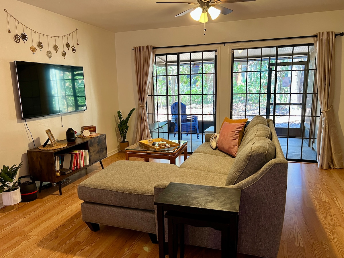 Fully renovated Zen condo perfect for your visit to Gainesville. Located a stone's throw from I-75, North Florida Regional Medical Center, and not far from UF and Shands, this updated cozy yet modern apartment has everything you need for a pleasant stay. Fully equipped with a KING bed, pullout sofa, and dedicated workplace. Enjoy your morning coffee or evening drink in the outdoor patio. Whether you're traveling for work or leisure, this apartment has it all.