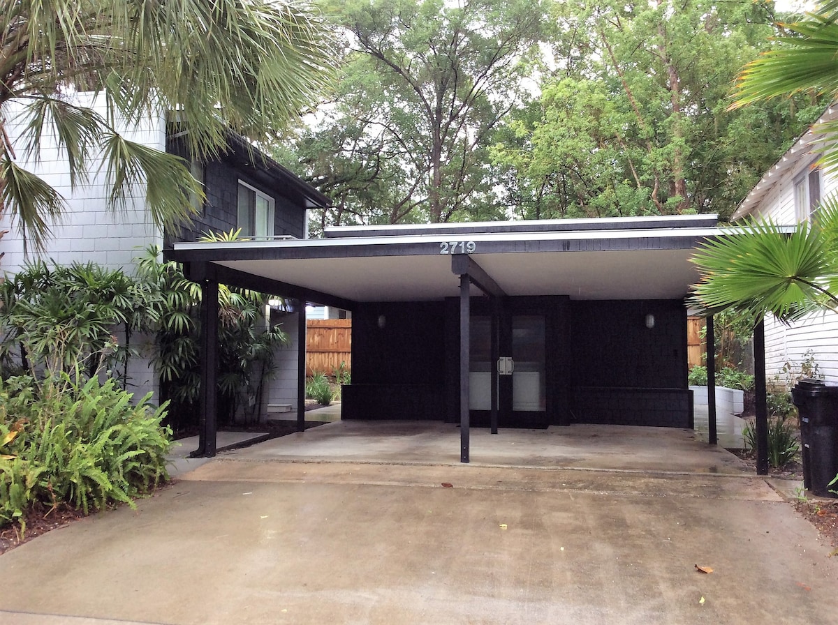 NEWLY RENOVATED - Enjoy your Gainesville stay in this mid-century modern studio 0.5 miles from UF and 2 miles from UF and HCA hospitals. No detail was overlooked in this beautifully designed detached guest house with an abundance of natural light, upscale finishes, and endless amenities - kitchenette, mini fridge/freezer, smart TV, and more! This conveniently located private and quiet space in the heart of Gainesville is perfect for anyone visiting for just one night or a few weeks.