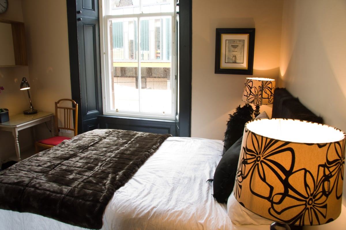 Stretch out and snuggle on the corner sofa after a wonderful day of exploring and enjoy the beautiful natural light from a classic top floor tenement bay window. Explore a more local part of the West End of the city with great individual eateries and shops on quiet streets leading to the Botanic Gardens and the River Kelvin. See our original artworks and books gathered over many years coupled with natural oak and stone flooring create a very restful and pleasant atmosphere for your stay.