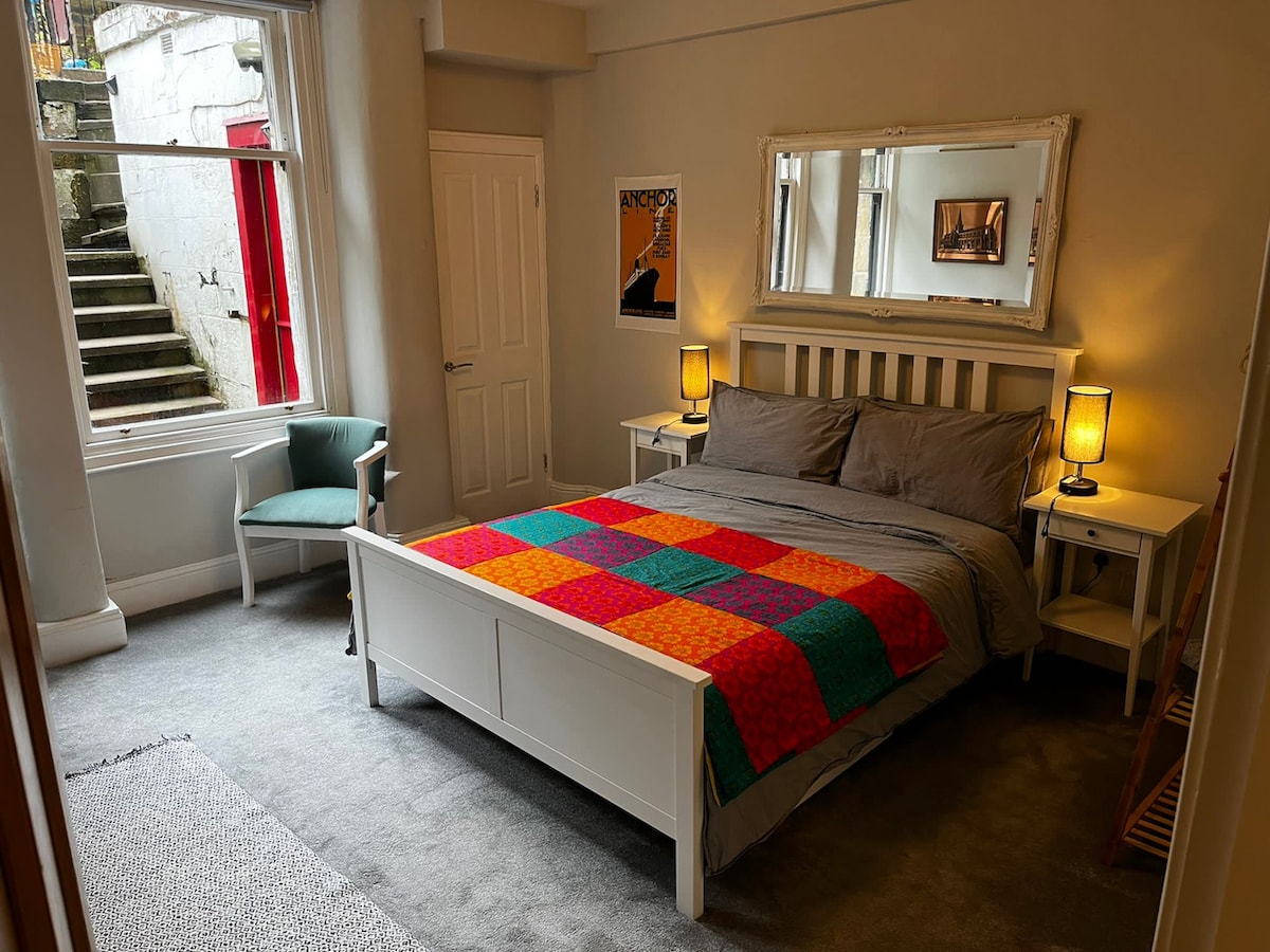Fantastic, quiet location in the heart of Kelvinbridge, minutes walk to the park, the University, Art gallery and the shops, cafes and restaurants of the West End. Ground floor of an 1870s Glasgow townhouse, Grand living room- open fire, dining table. equipped kitchenette- fridge, ice box, cafetiere. Large, sunny bedroom, emperor bed, cotton sheets, natural mattress, heavy curtains . Plant filled bathroom, free standing bath, walk in shower. Fast WiFi. 50” tv. Alexa music. Heat controls