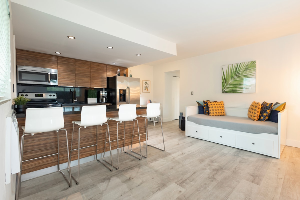 Charming & Affordable Private Studio ! Enjoy the perfect blend of modern comfort, style, and sustainability in this fully-renovated 600 sq. ft. studio. With a plush queen bed, cozy sofa bed, and a fully equipped kitchenette, it accommodates up to 3 guests comfortably. Thoughtfully designed for maximum privacy and relaxation, it’s ideal for leisure or business travelers. Just minutes from Miami’s top attractions, beaches, and dining. Book now for an unforgettable stay!