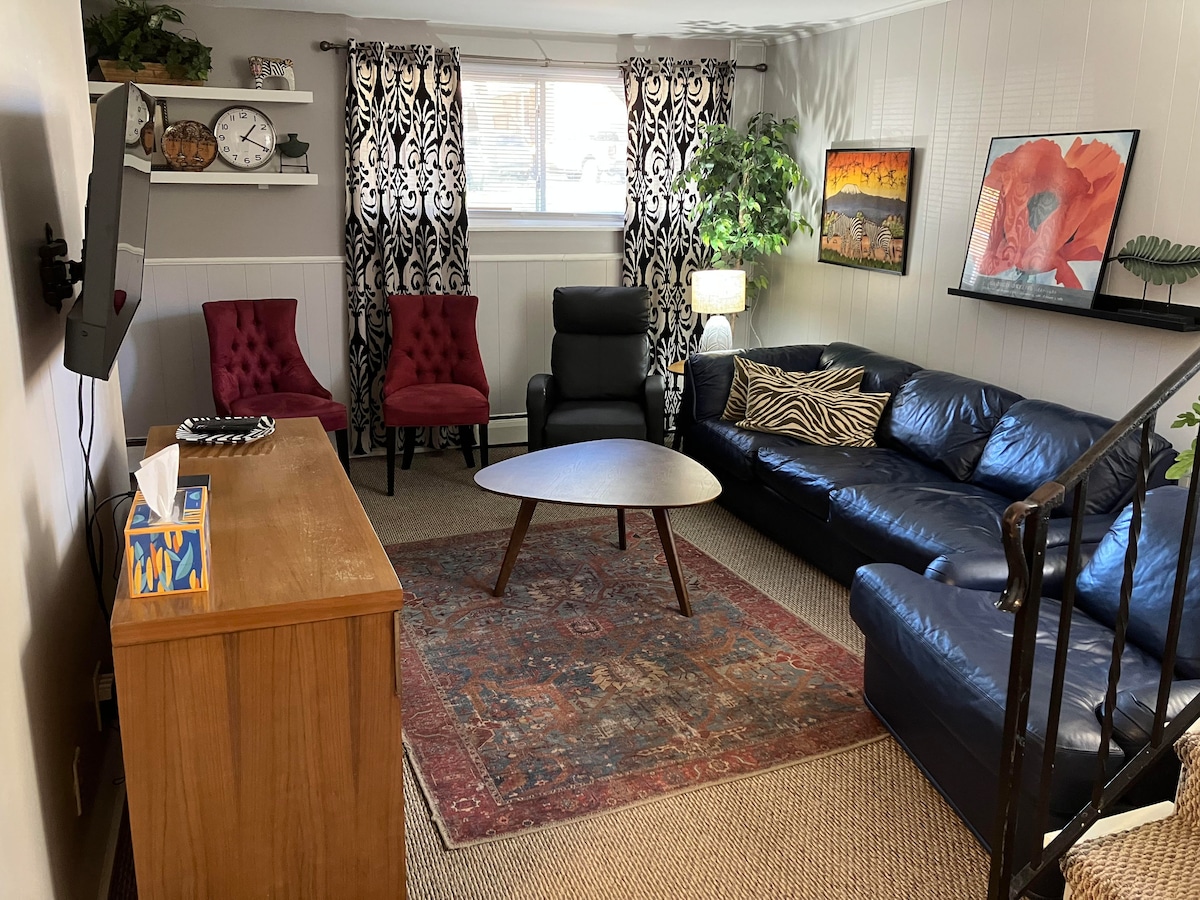 Two bedroom upper level suite. Nice location in the old west side area. Approx 20+ min walk (approx 1.2 miles) to central Main St area downtown, campus is further. Two bedrooms w/queen sized beds. Updated bathroom. Living room, TV w/cable. Dining space, kitchenette with full fridge, small appliances, supplies (no stove-oven, not a full kitchen). Vintage character and updated. Private entrance, keypad access. WIFI. Parking. Duplex type, host lives in lower level. Read listing & rules.