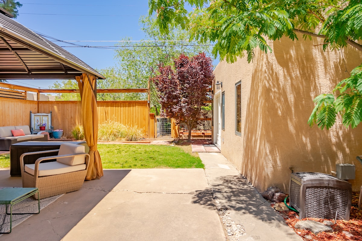 This modern southwest casita sits snuggly on our 1923 historic adobe property blending olde materials and modern amenities. Artist constructed; it brings a modern twist to your Albuquerque adventure. Casita is Spanish for little home, and this casita is entirely a home. Featuring full kitchen, King bed, a waterfall shower, private patio and pocket entryway doors that merge NM's beautiful outdoors with our cozy indoors. Permit:052140
