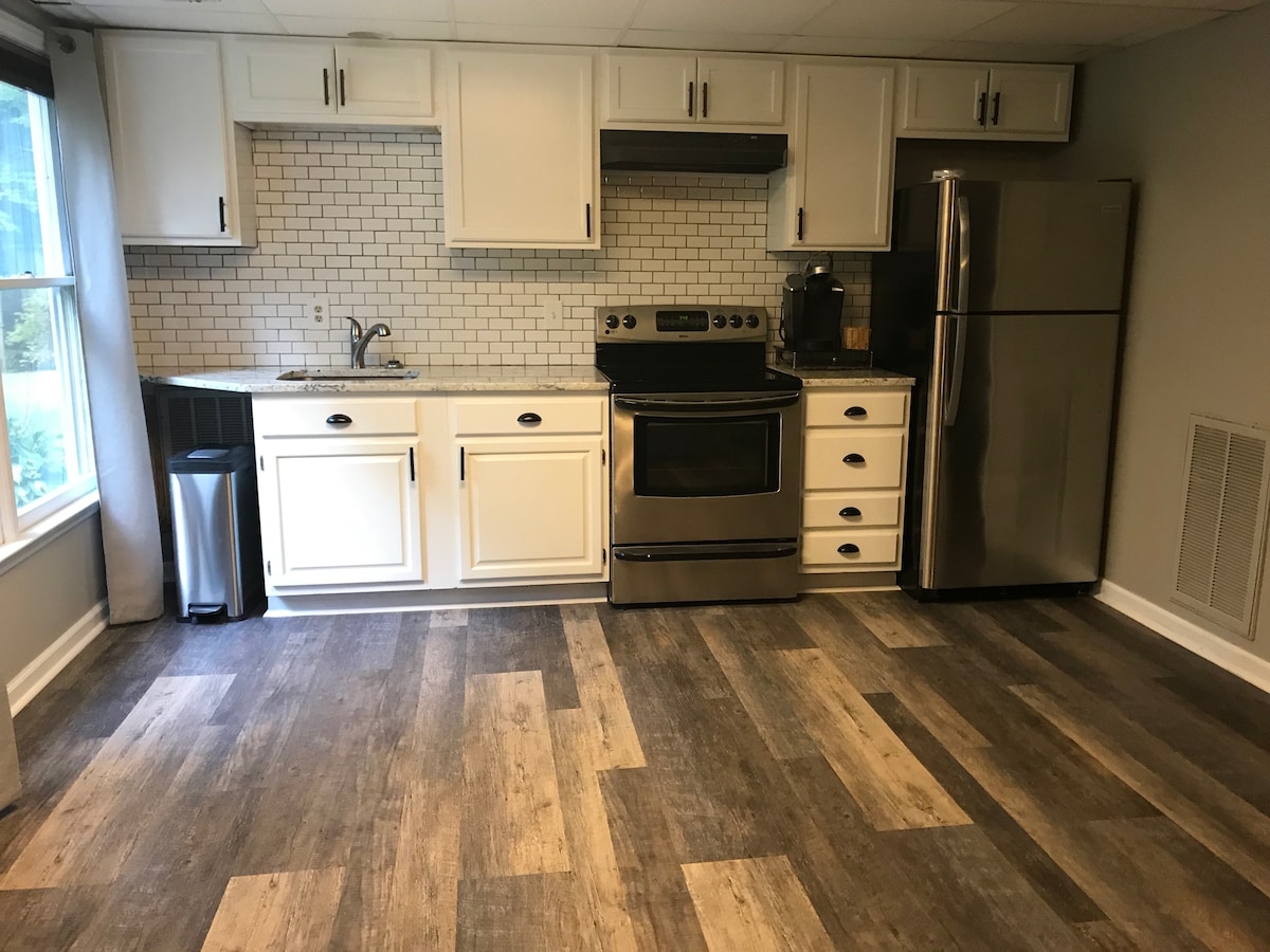 This is a newly renovated spacious private apartment above our home’s garage with a private entrance. The apartment has 1 bedroom with a queen-size bed and closet, a full bathroom with tub/shower, a kitchenette, and a living room. An additional twin-sized blow-up mattress is available upon request. Only smaller pets under 45 pounds are allowed with small added fee.
