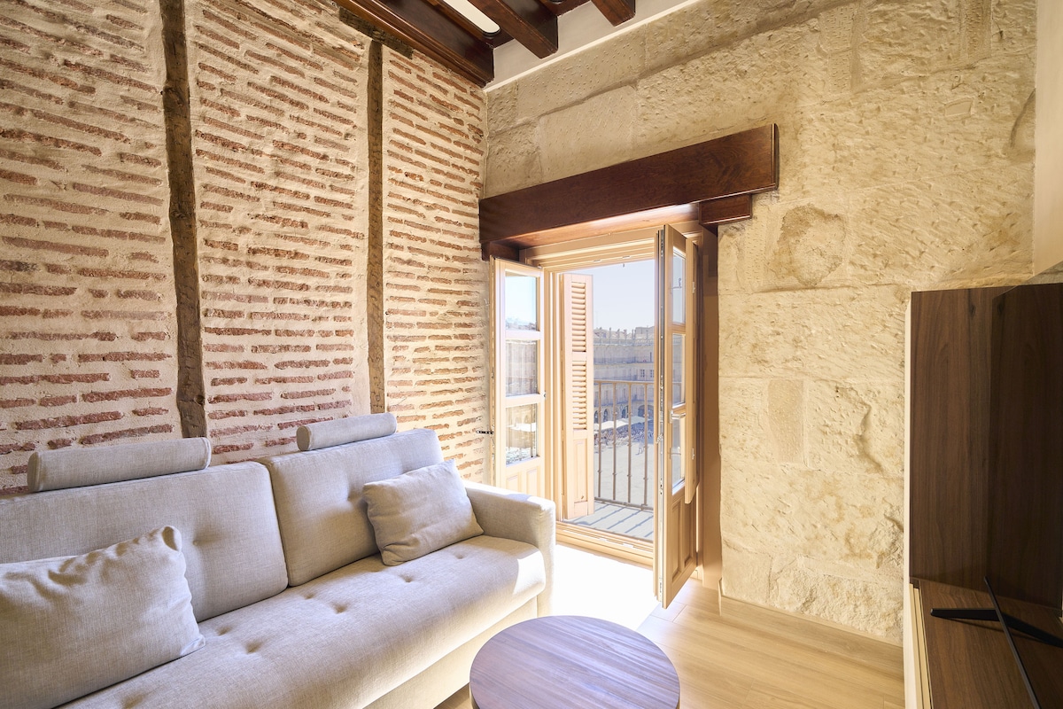 Exclusivo apartamento ubicado en una esquina de la Plaza Mayor. Está distribuido en dormitorio, salón con cocina americana y baño completo. Apartamento en pleno centro de la ciudad con todo lo que ello implica, cafés, restaurantes, terrazas y todo el bullicio del centro pero...en el que una vez que cierras la puerta te encuentras en el que será tu hogar por el tiempo que elijas.... El apartamento está dotado de aire acondicionado en todas las estancias.