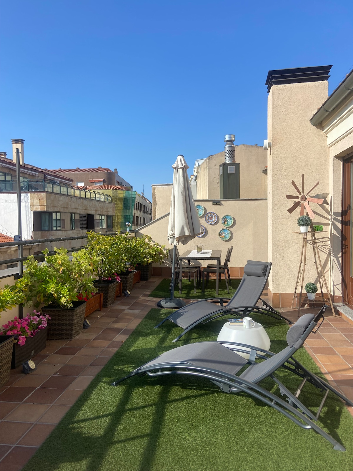 位于中心的顶层公寓。露台很棒