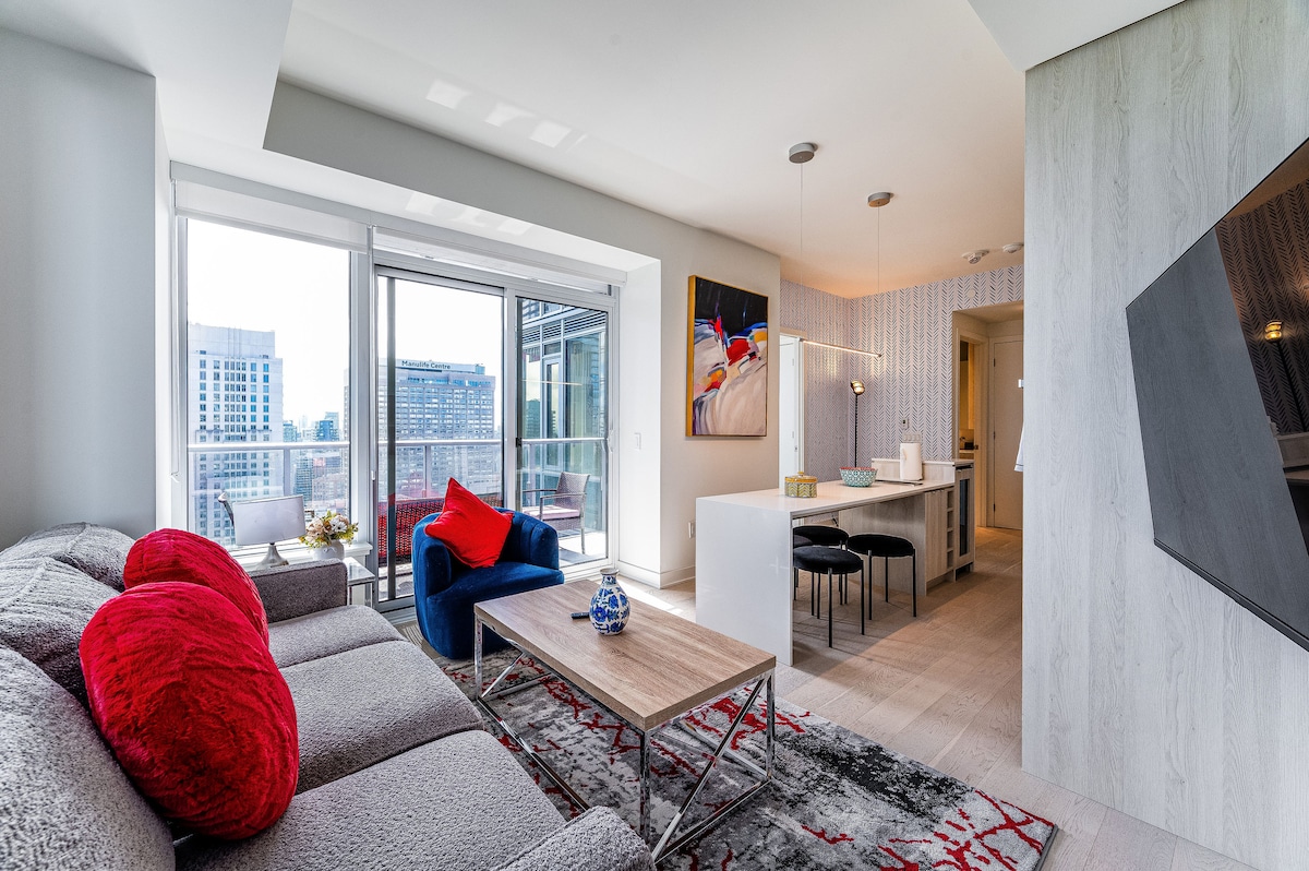 Welcome to your 1-bedroom luxurious high-floor retreat in the heart of downtown Toronto! All just steps from Bay & College What You’ll Love: • High floor with city skyline views • Extra tall ceilings & full-height windows • Bright and airy space with abundant natural light • Fully equipped kitchen & in-unit laundry • High-speed Wi-Fi&Smart TV • Walk Score 99 – subway, U of T, Eaton, Restaurant all within minutes Perfect for couples, or solo traveler who want premium comfort in a prime location.