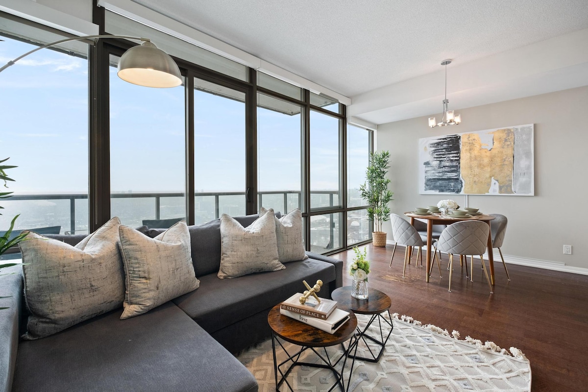 Luxurious 2BR/2BA condo in downtown Toronto near U of T, AGO, OCAD, Queen’s Park & Eaton Centre. Walk to shops, cafes, and subways. Features 2 queen beds, Italian couch, full kitchen, washer/dryer, city views, and Samsung projector. Enjoy gym, yoga room, sky lounge & BBQ area. Self check-in. No pets. ID verification required. Parking available. Inquire about long stays, early check-in & late check-out.