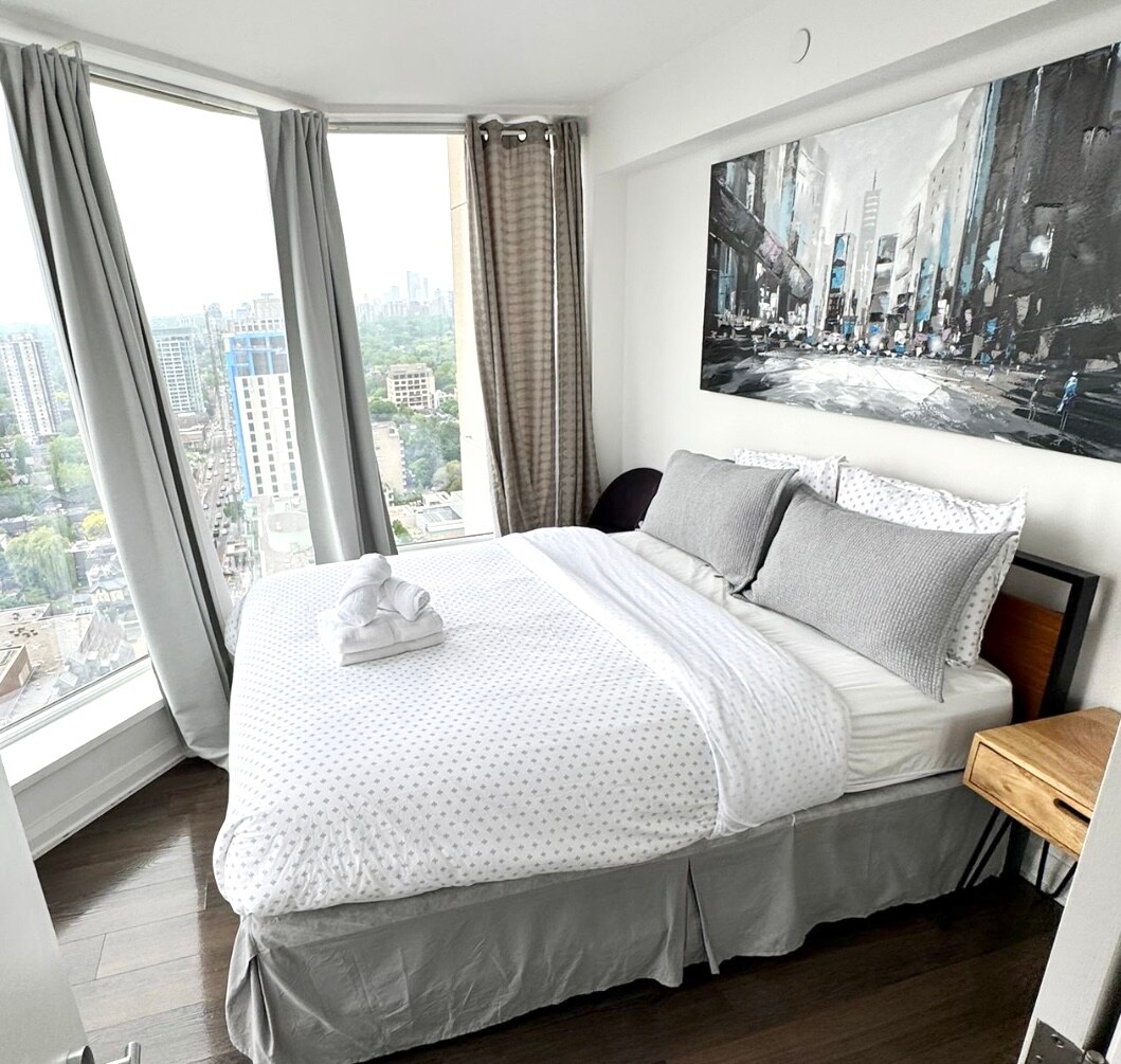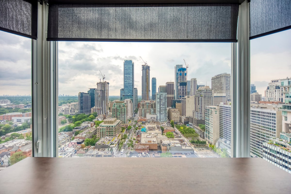 Just a heads-up: Possible loud noises due to renovations between June 13 and August 31. Please plan ahead if you're working from home. Friendly reminder: You'll need to complete building registration pre-check-in. Details shared post-booking. Welcome to Toronto's most central location! In the heart of downtown, experience a worthwhile staycation while having an easy access to the city's famous attractions.