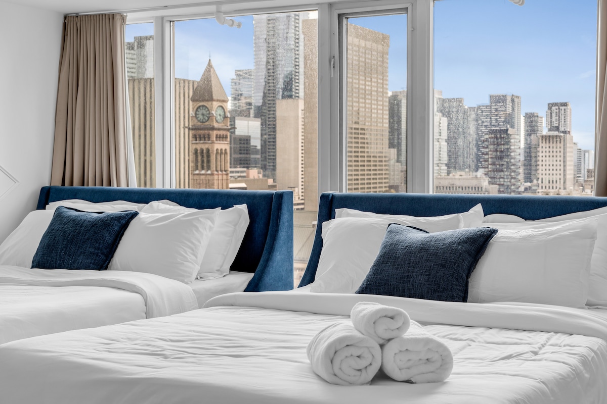Wake up to stunning views of Toronto Island and the CN Tower! Prepare a delicious meal in our fully-equipped kitchen, and relax by the fire or on your private enclosed balcony. This elegant 2 Bedrooms + 2 Bath offers free parking and is located in the heart of downtown next to Scotiabank Arena and Union Station. Walk to the CN Tower, Rogers Center, Ripley’s Aquarium, and the best restaurants in the city. Promotions available for long term renters. Please message. License# STR-2209-HZZVHM