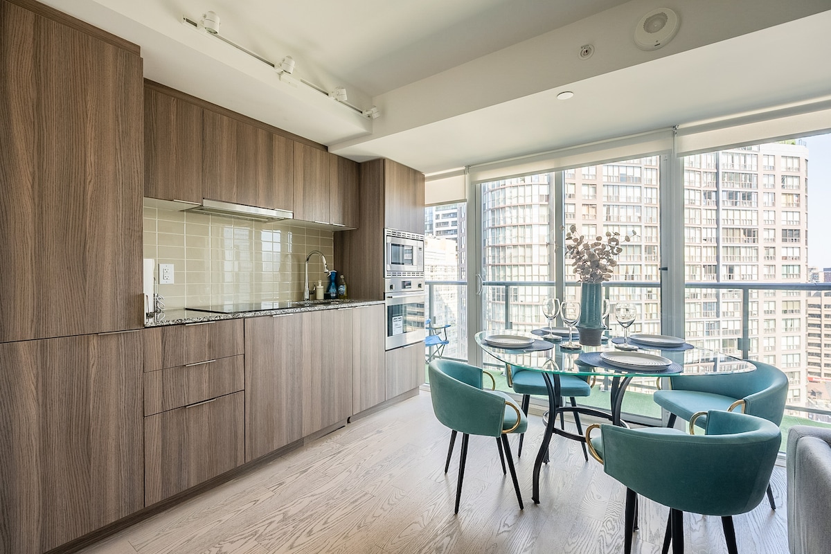 - Your city escape awaits in this stylish one-bedroom apartment on Bay St, Toronto - Steps away from shops, restaurants, and cultural hotspots in a vibrant locale - Modern amenities include a fully equipped kitchen and plush queen-size bedding - Quick access to transit, major universities, and iconic attractions nearby - Experience prime urban convenience, reserve your ideal trip today