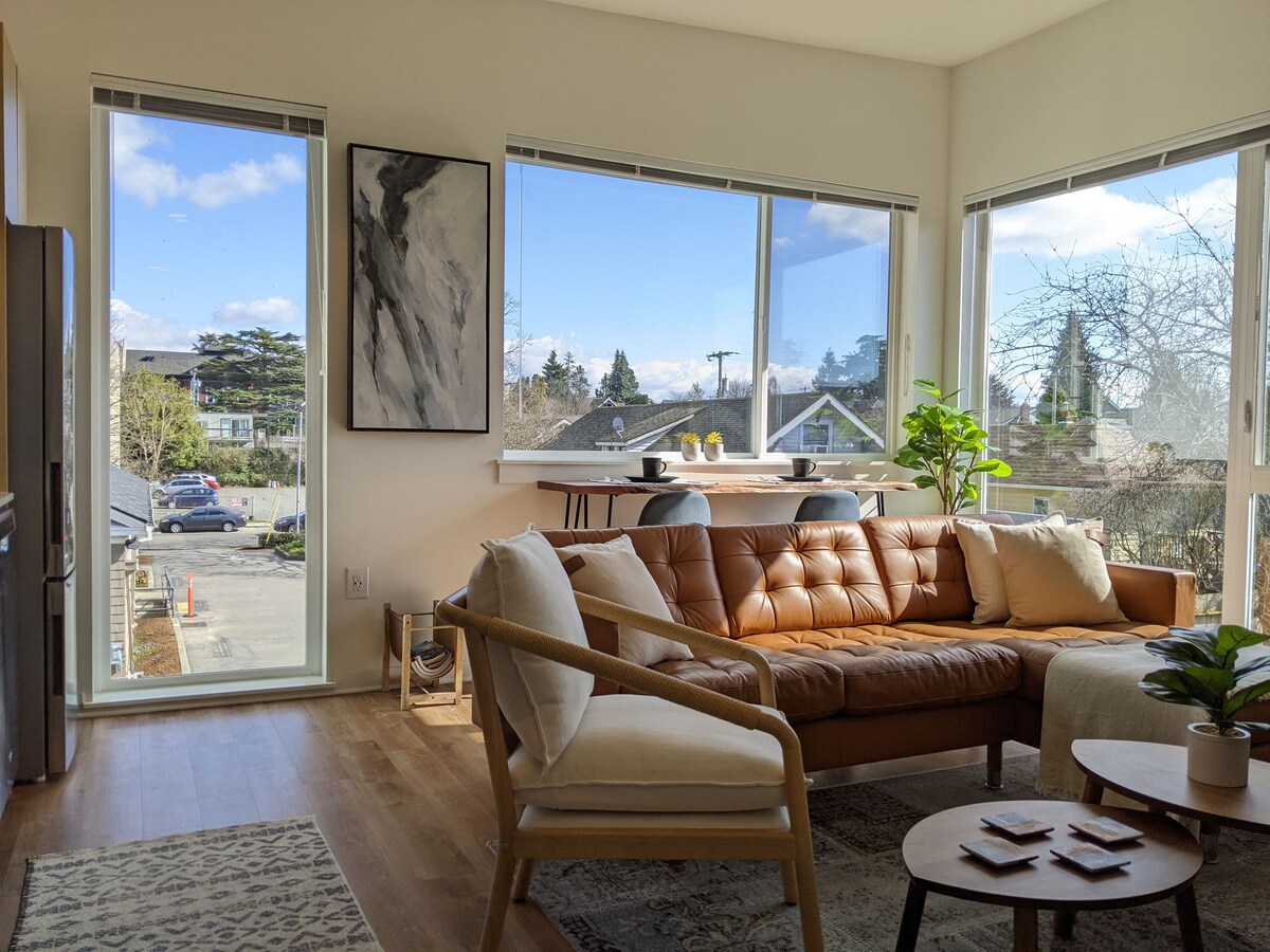 A premier smart condo located in the heart of Wallingford. This super bright, top-floor, south-facing corner unit features oversized windows, 10-foot high ceilings and peek-a-boo views of the Seattle skyline. With a walk score of 97, staying at this place puts you in the middle of it all -- grocery stores, fine dining and boutique stores are a stone throw away, parks are within minutes, and nearby bus routes can quickly put you at the doorsteps of UW, Seattle's financial district, etc.