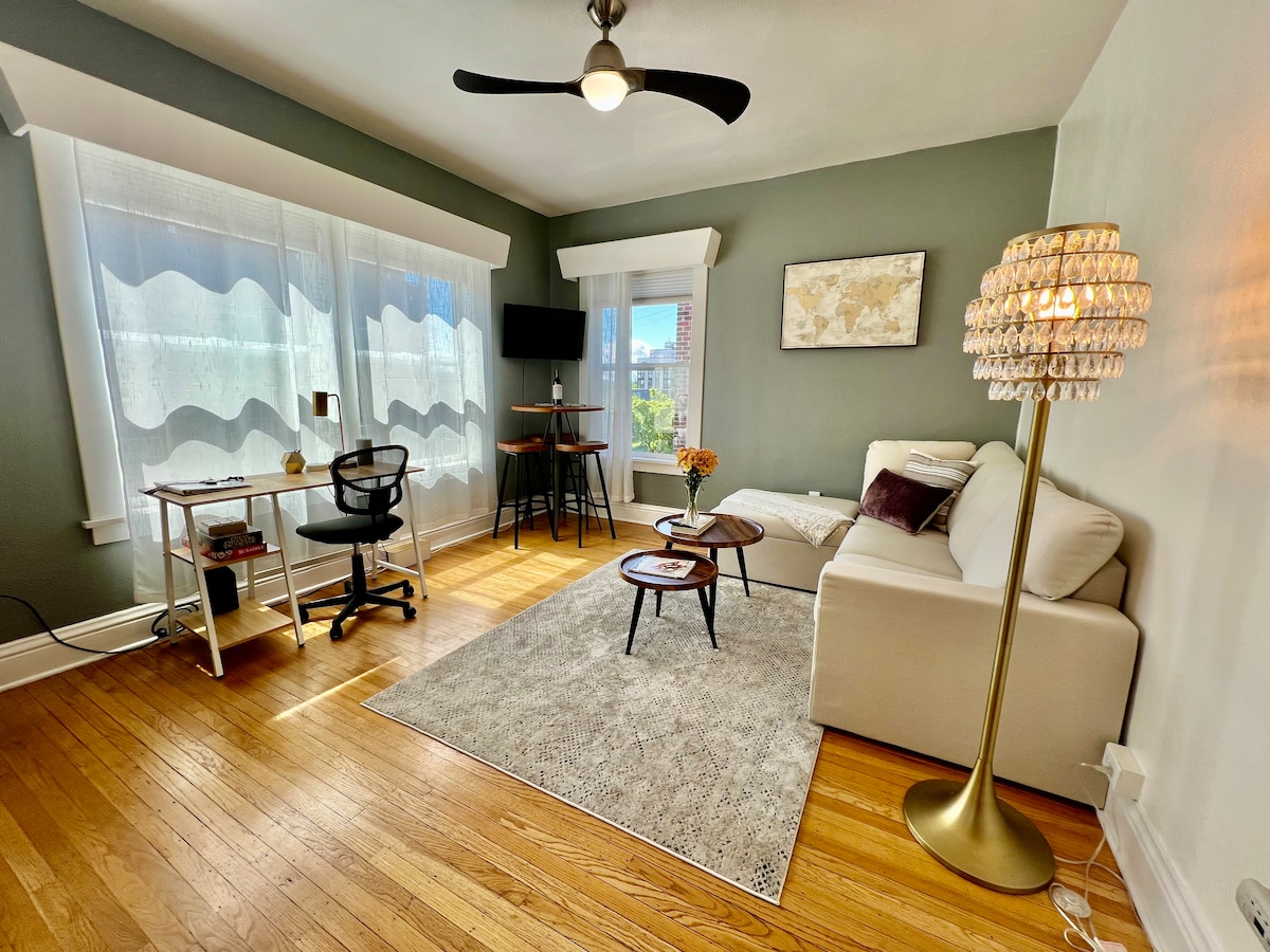 Experience a peaceful Seattle retreat in this beautifully renovated (May 2018) mid‑century modern penthouse in the heart of Wallingford. This 1,300 sq ft private top‑floor suite sits in an in‑city oasis just 3.5 miles from Downtown, and 1.2 miles from the UW! Designed specifically for guest comfort, the Penthouse Suite features air conditioning, double‑pane windows, keypad entry, and dedicated parking. Enjoy the privacy of an entire floor with stylish finishes and thoughtful touches throughout.