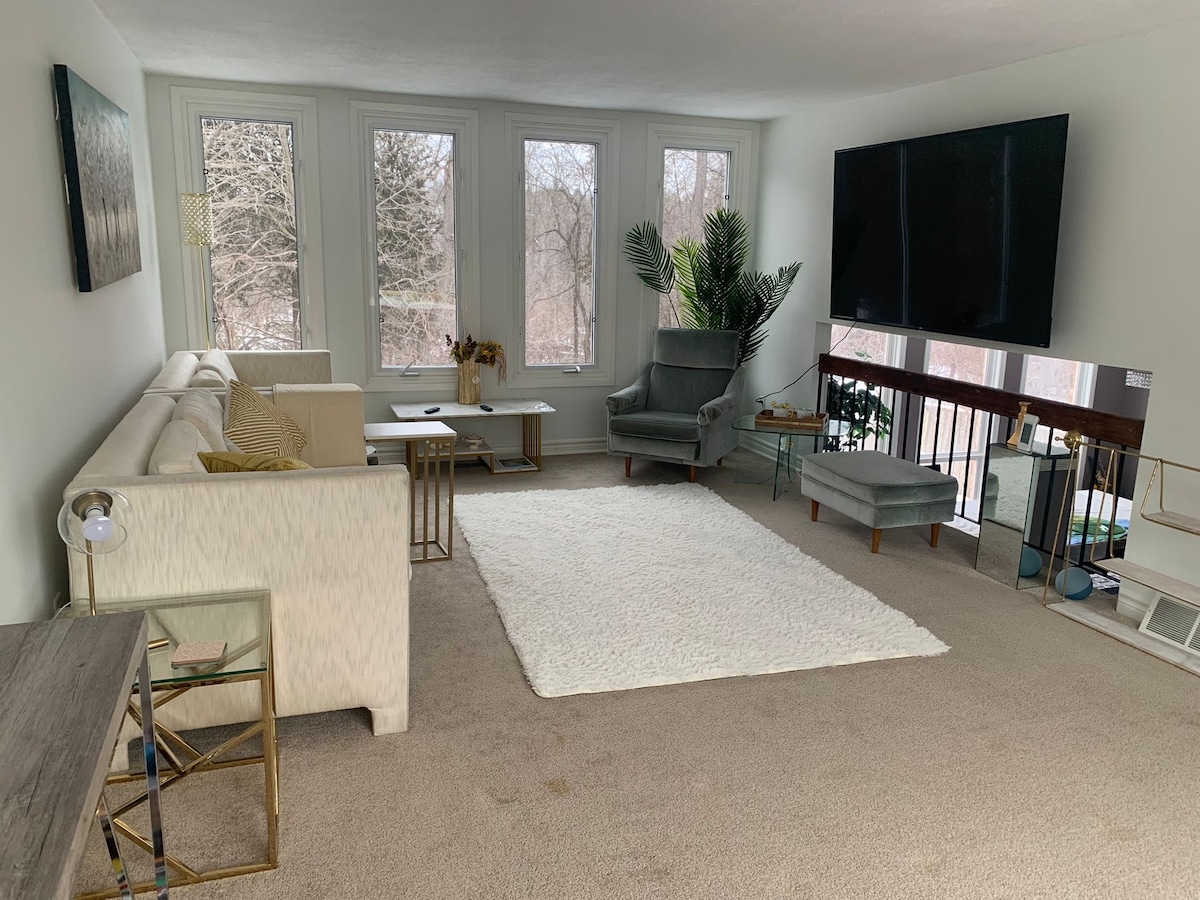 Escape to our cozy, fully remodeled house nestled on 3 acres of breathtaking nature. Enjoy stunning forest views, tranquil landscapes, and a large pond, perfect for a peaceful retreat. Whether you're exploring scenic landscapes or relaxing by a fire, this unique getaway offers both comfort and serenity. Experience the perfect blend of modern amenities and natural beauty. Fires are welcome to enhance your outdoor experience. Located 2.5KM from Waterloo Regional Airport (YKF).