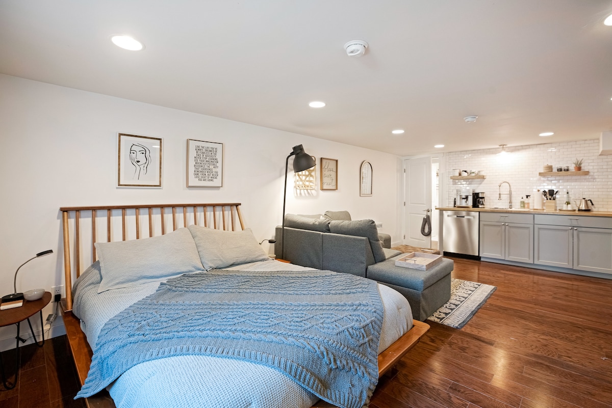 A quiet, private lower-level studio apartment with a separate entrance, bathroom, and kitchenette. Designed for comfort and independence, it’s an ideal place to relax and recharge. Conveniently located in a walkable area close to bars, coffee shops, and The University of Puget Sound. Everything you need is just steps away. The studio includes carefully chosen details and everyday comforts to help guests feel at home, offering a clean, well-appointed space for an effortless stay.