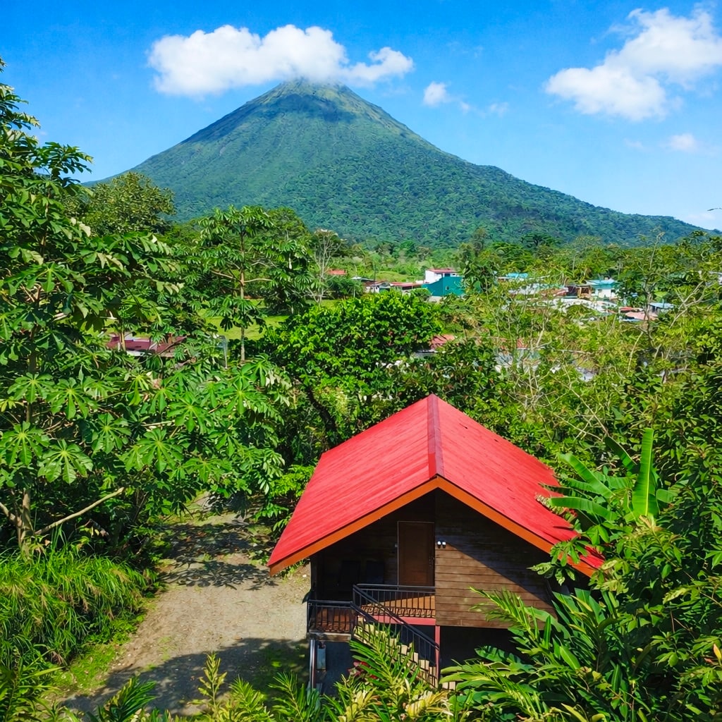 ¡Pura vida! Slip into our magical cabins for a soul-reviving retreat. Brew your cafe in the jungle, spellbound by Arenal Volcano's radiant shimmer as jungle melodies hum in harmony. King bed, A/C, kitchen, and walk-in shower. Splash into our gleaming pool & jacuzzi, dissolving cares like misty rainforest dew. Close to nature's wonders—hot springs, zip-lines, sloth-spotting adventures a moment away. ! Come and dive into Costa Rica's pulsing paradise. Tropical vibes await!
