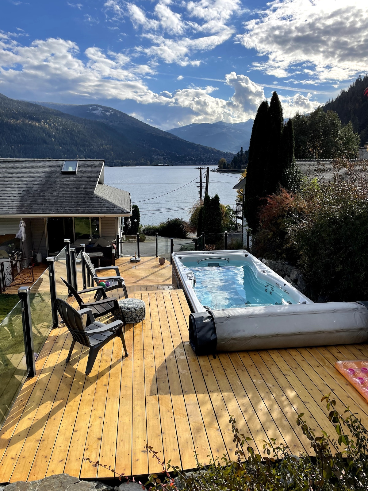 This luxurious waterfront home is located 15 minutes south of Nakusp on the pristine Arrow Lakes. The area is well known for amazing hot springs, unspoiled landscapes, and a wild array of outdoor activities for all seasons. Enjoy the panoramic views and sunsets from the expansive deck in the private hot tub. Make memories (and s'mores) around the waterfront fire pit in the evening, while enjoying your private beach during the day. Perfect for romantic getaways or a fun family/friends retreat.