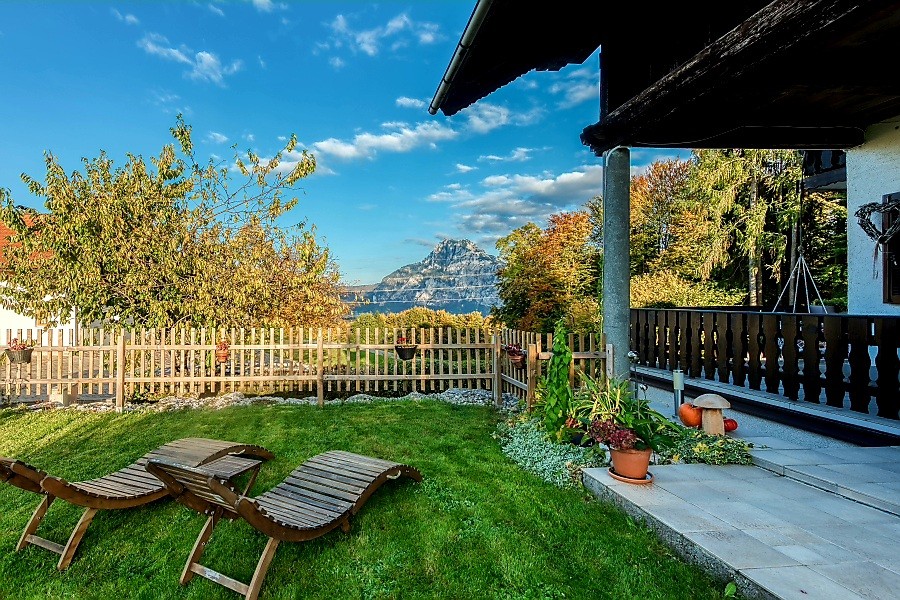 Loft im Atelier Dieses stylishe, gemütliche Loft in Etienne's Atelier liegt am Waldrand etwas außerhalb von Bad Ischl. Kunst- und Naturliebhaber kommen hier voll auf ihre Rechnung. Gehe auf Tuchfühlung mit dem Künstler Etienne, der im Erdgeschoß des Ateliers malt. Die Aussicht auf die malerische Bergkulisse ist berauschend. Von der Terrasse auf der Ostseite, kannst du beim Frühstück die Morgensonne genießen und hast einen wunderbaren Blick auf den Garten mit Teich und Grillplatz.