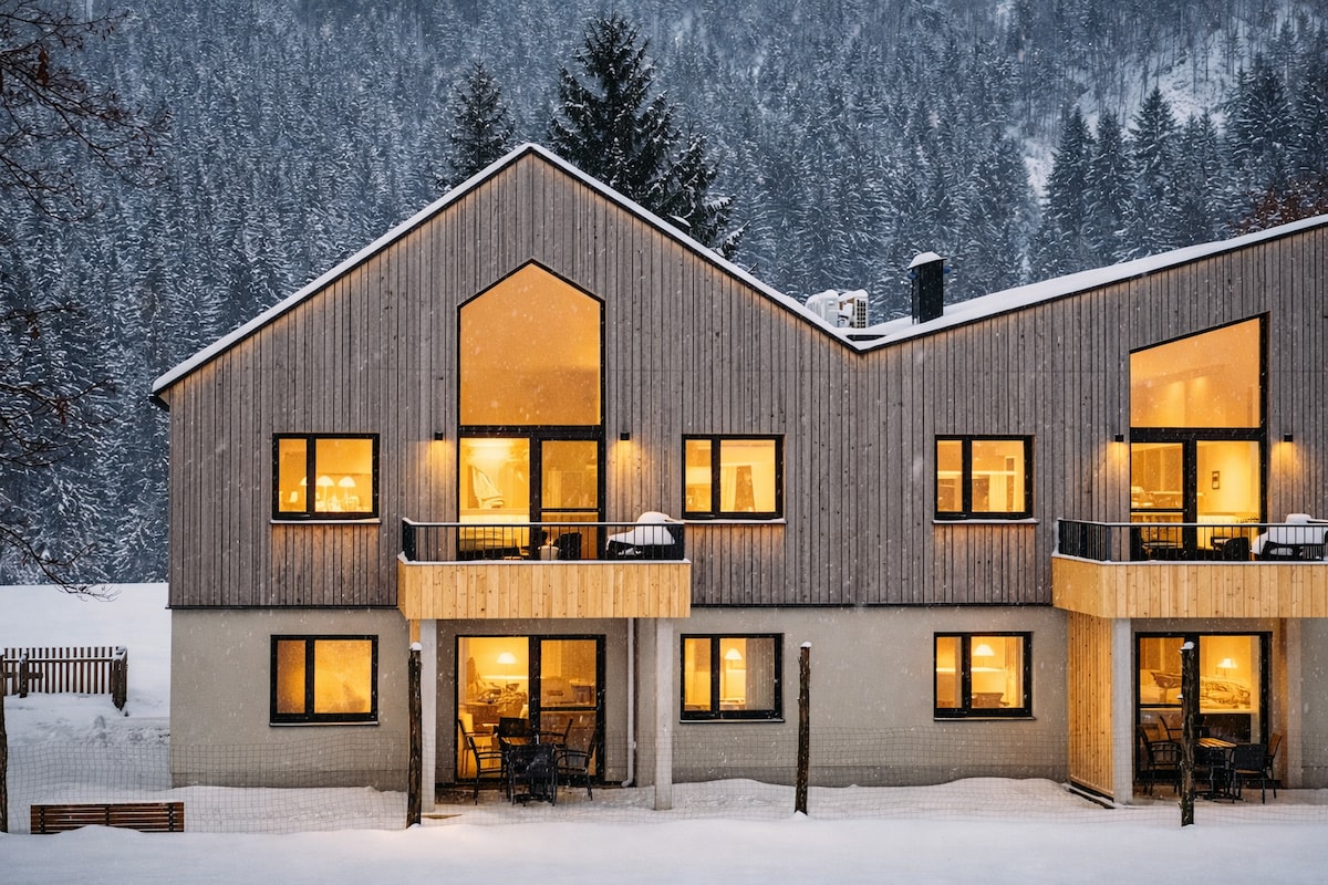9 PREMIUM ACCOMMODATIONS IN GOSAU Welcome to Dachstein 7 (D7). Open since Januar 2020. Nine exclusive apartments in Gosau in the Salzkammergut. Holiday, incentive, event or conference - At the foot of the Dachstein mountain you will experience our seven truths. Would you like to take a break from your stressful everyday life or are you looking for hiking and skiing fun in the mountains? Dachstein 7 is the right place for all of it. You can enjoy yourself in our D7 Spa for exclusive use.